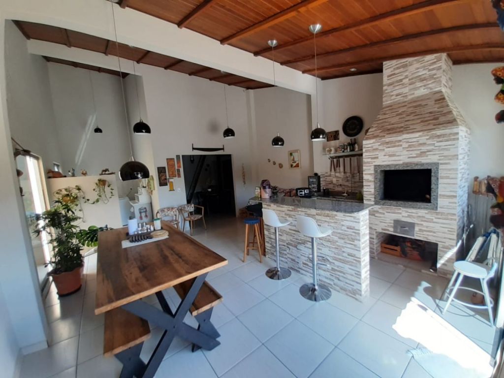 Piso térreo :Sala de tv, cozinha, área de serviço, bwc social, espaço gourmet com churrasqueira, amplo espaço externo e 2 vagas de garagem cobertas.
