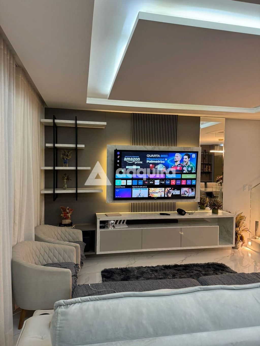 Esta casa, no condomínio Terras Alphaville, fica de frente para a área de preservação com uma vista permanente do campo e da cidade.