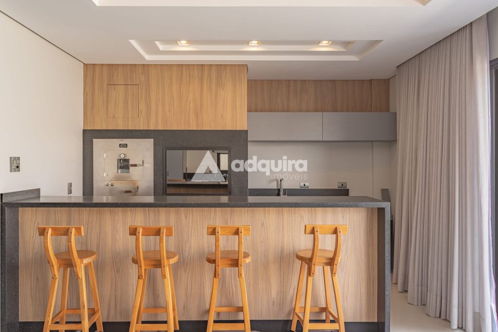 Cozinha integrada com a churrasqueira, em espaços separados, porem em conceito aberto, permitindo uma área de convivência única para refeições e encontros, integrada tambem com a sala de jantar.