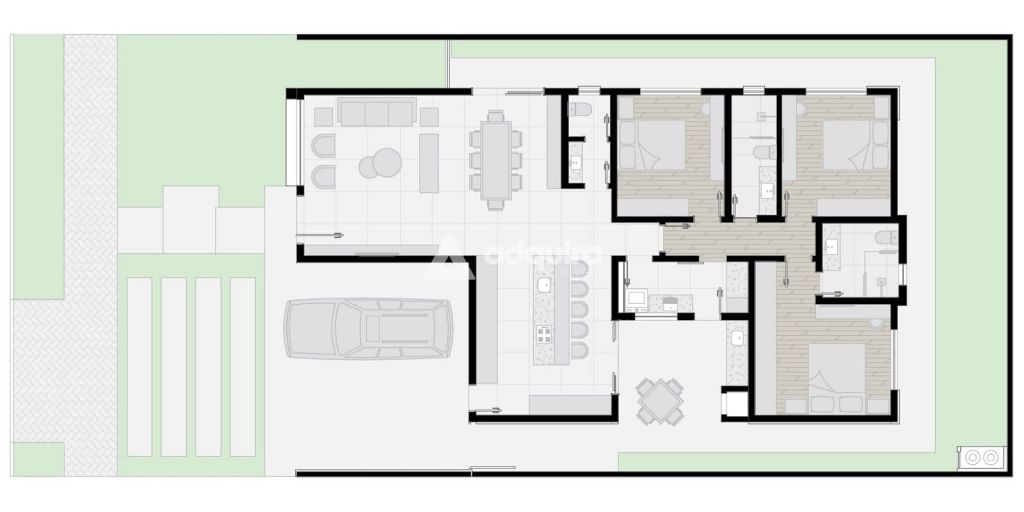 Casa térrea no Condomínio Terras Alphaville, com projeto moderno e pé-direito alto, oferecendo amplitude e excelente iluminação natural. O imóvel conta com ampla sala de estar e jantar integrada à cozinha em conceito aberto, posicionada de forma estratégica no lado direito, garantindo privacidade e menor visibilidade para quem entra. Possui lavanderia, lavabo que também atende como banheiro social, três quartos sendo uma suíte, além de ótimo padrão de acabamento em todos os ambientes.