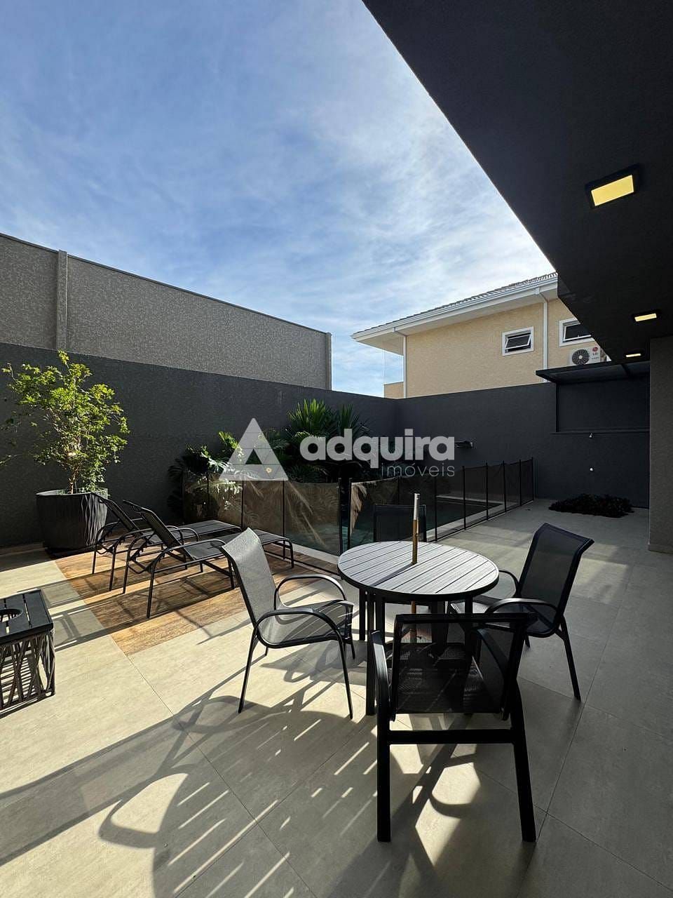 A cozinha é prática e bem distribuída, acompanhada de lavanderia independente e lavabo. Na área externa, destaque para a piscina aquecida, o pergolado e o ambiente harmonioso, perfeito para o lazer em família.