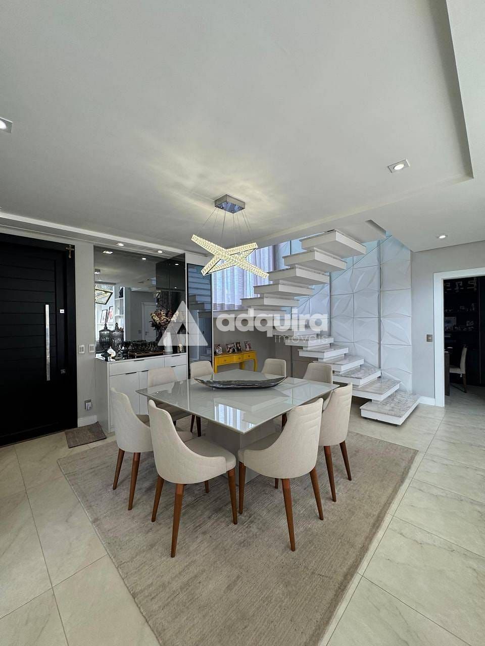 O imóvel conta com 3 amplas suítes, sendo 2 delas com closet, além de uma sala íntima de TV ideal para momentos de descanso. Possui ainda um elegante escritório, perfeito para o home office, e uma espaçosa sala de jantar integrada à sala de estar com lareira, proporcionando um ambiente acolhedor e ideal para receber.