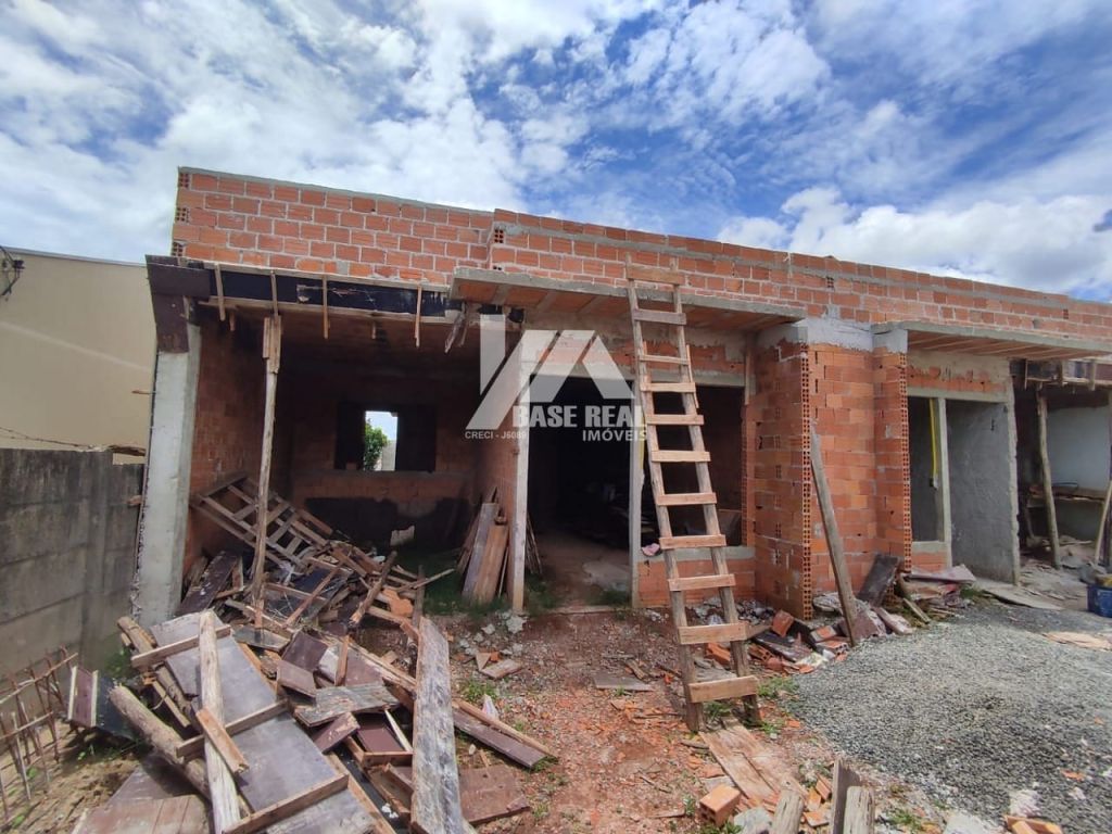 Casa em construção com aproximadamente 82m², conta com: 03 quartos, sendo um suíte, sala de Tv e sala de jantar em ambiente amplo e integrado, cozinha, banheiro social, área de serviço coberta.