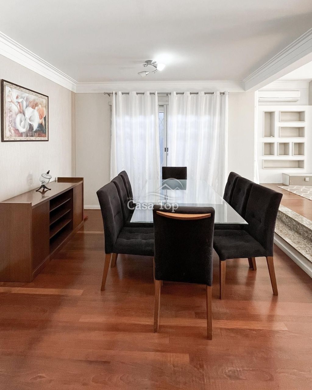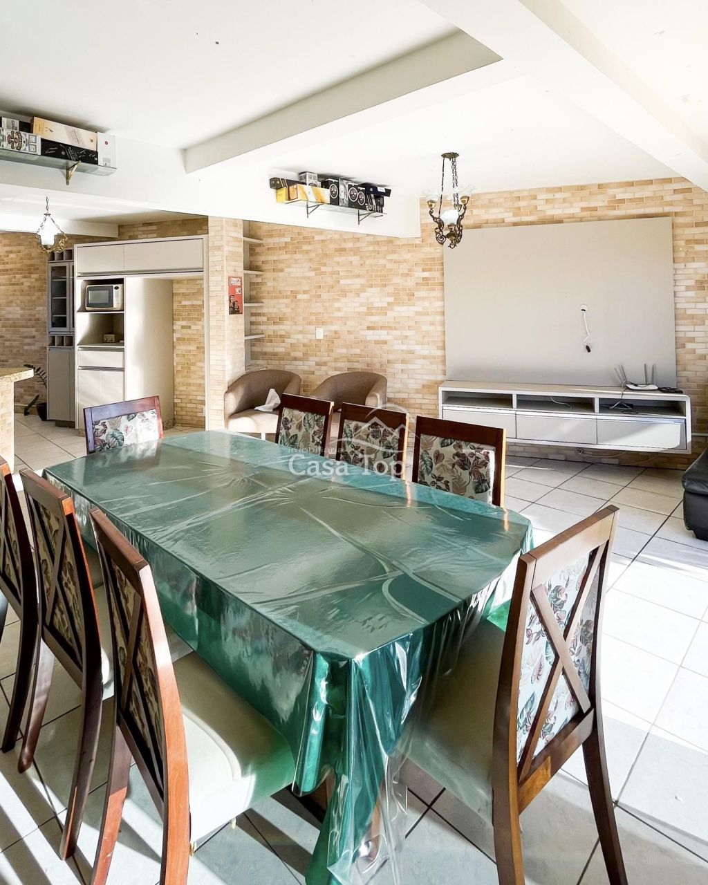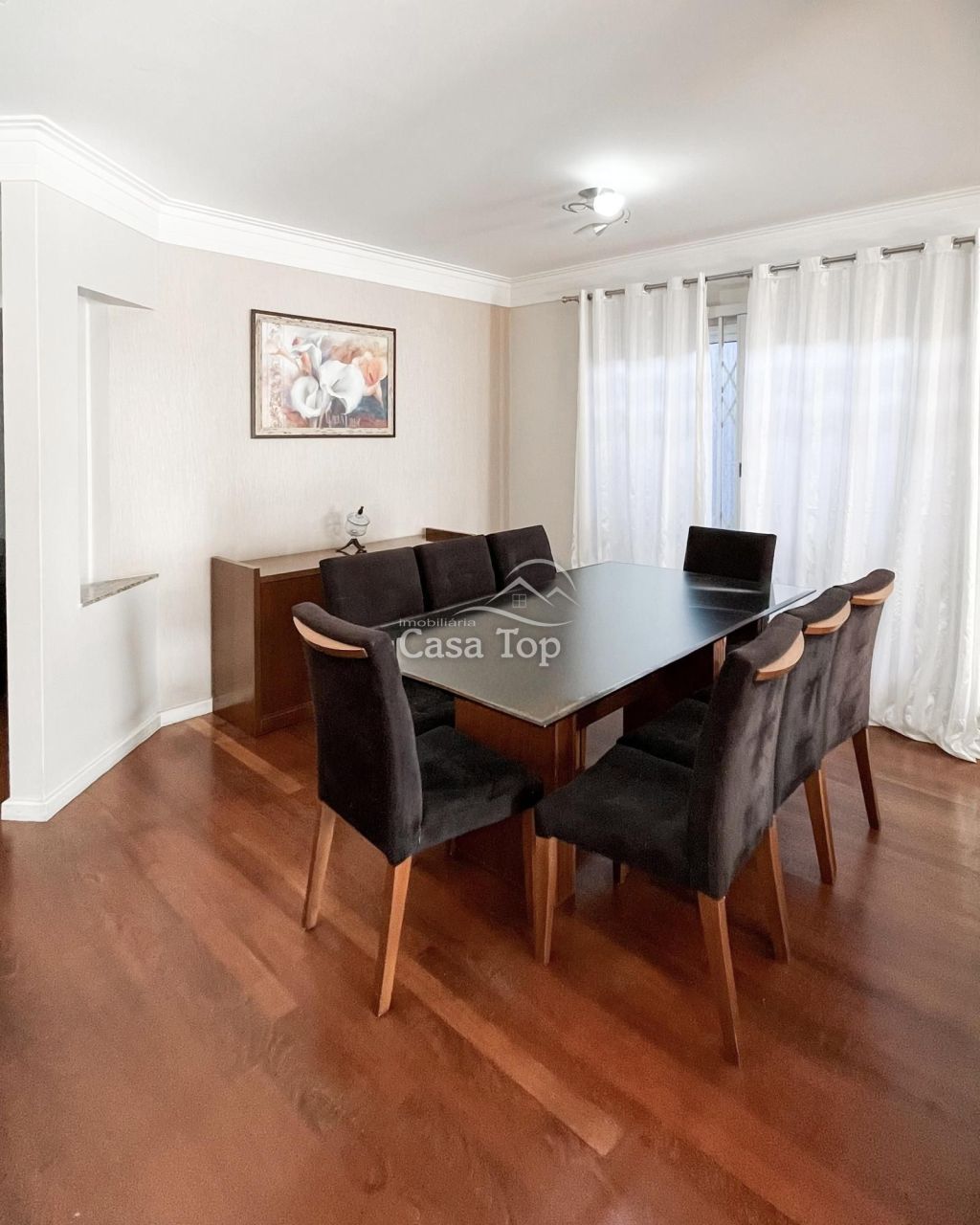 Residência medindo aprox. 196,07m², contendo 3 quartos (sendo 1 suíte com closet e hidromassagem), ampla sala de estar com varanda, sala de jantar, cozinha com móveis planejados, escritório, área de serviço, BWC social, lavabo e 4 vagas de garagem.