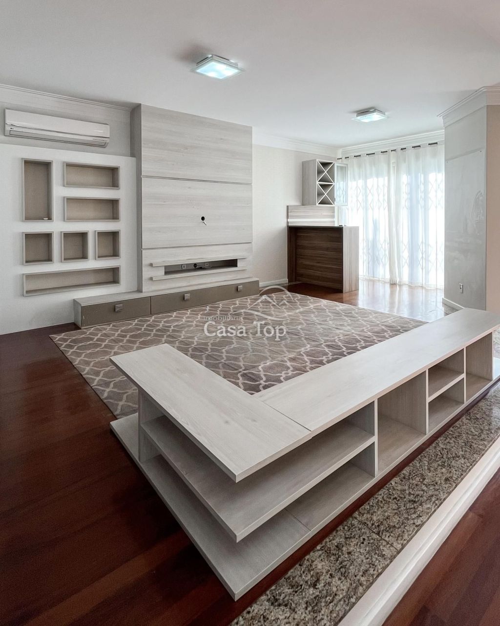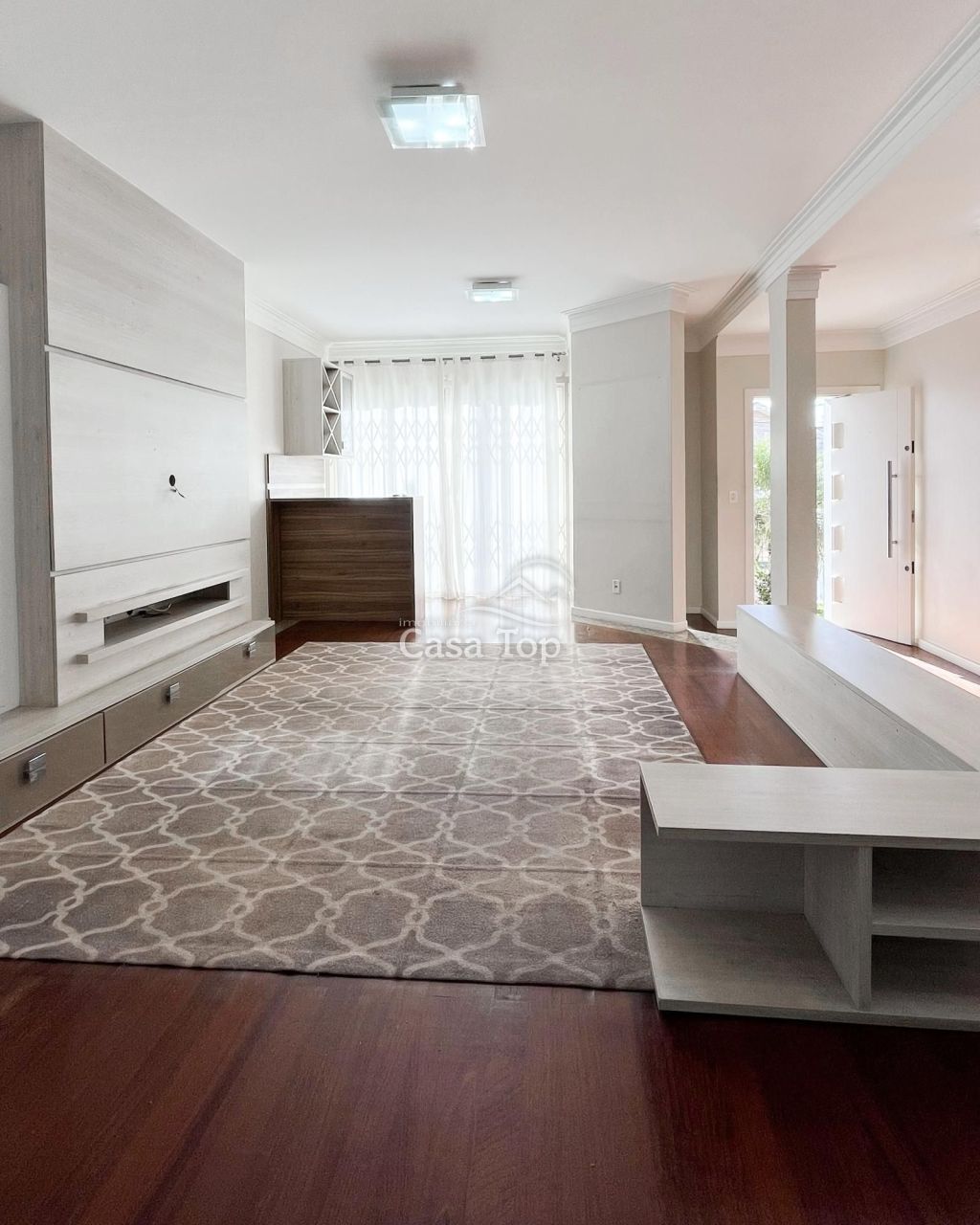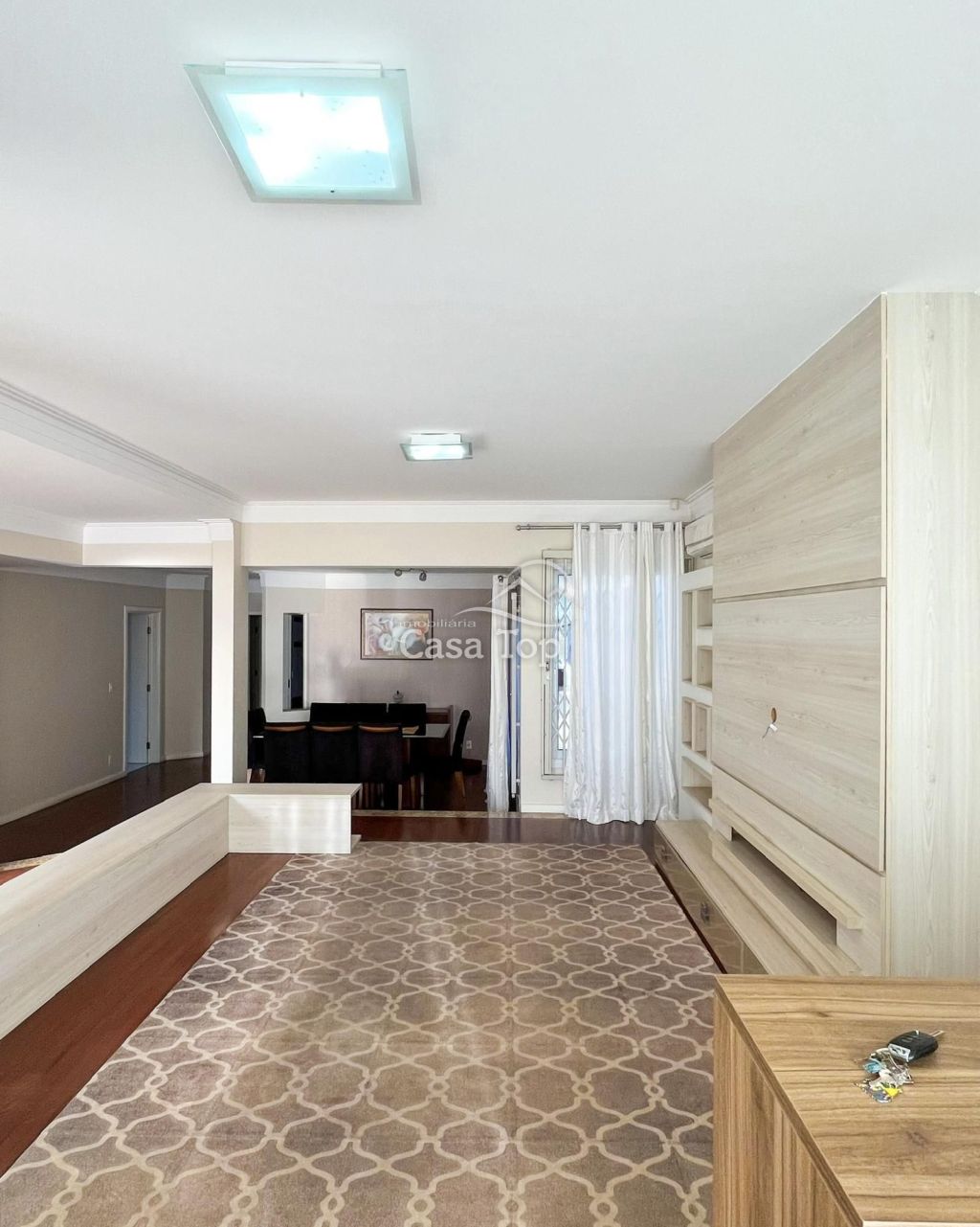Residência medindo aprox. 196,07m², contendo 3 quartos (sendo 1 suíte com closet e hidromassagem), ampla sala de estar com varanda, sala de jantar, cozinha com móveis planejados, escritório, área de serviço, BWC social, lavabo e 4 vagas de garagem.