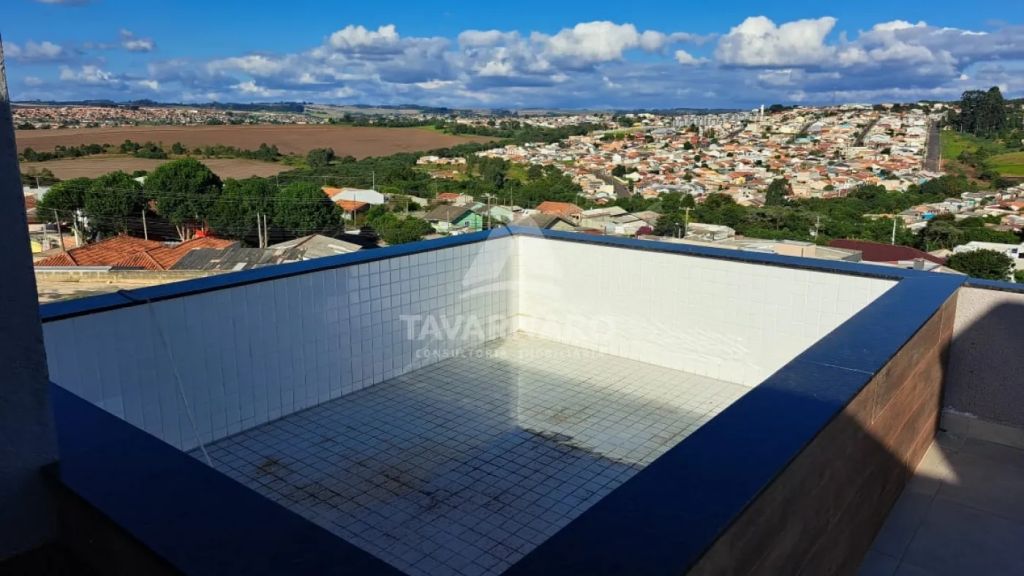 Terraço (100m²) com piscina, churrasqueira e banheiro.