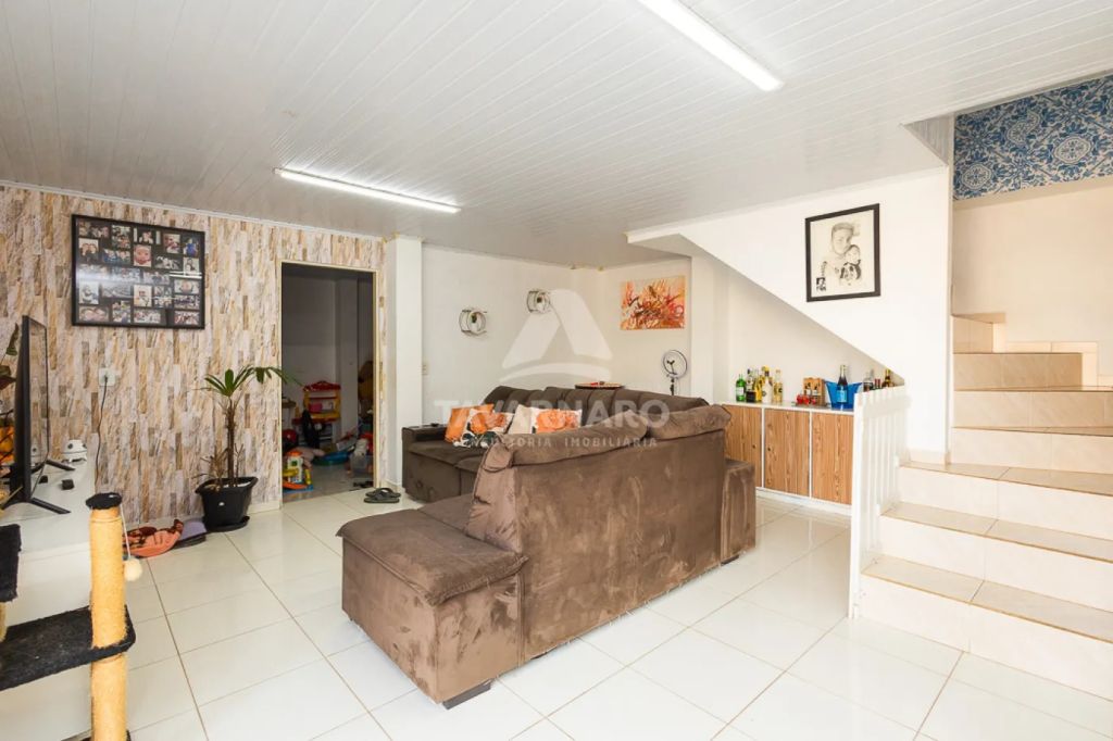 A casa ao fundo com 200m² contendo : Piso inferior sala para dois ambientes , cozinha , 2 banheiros despensa .