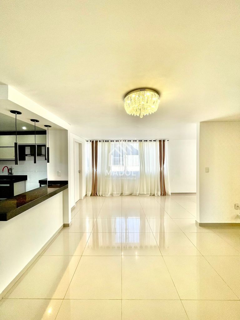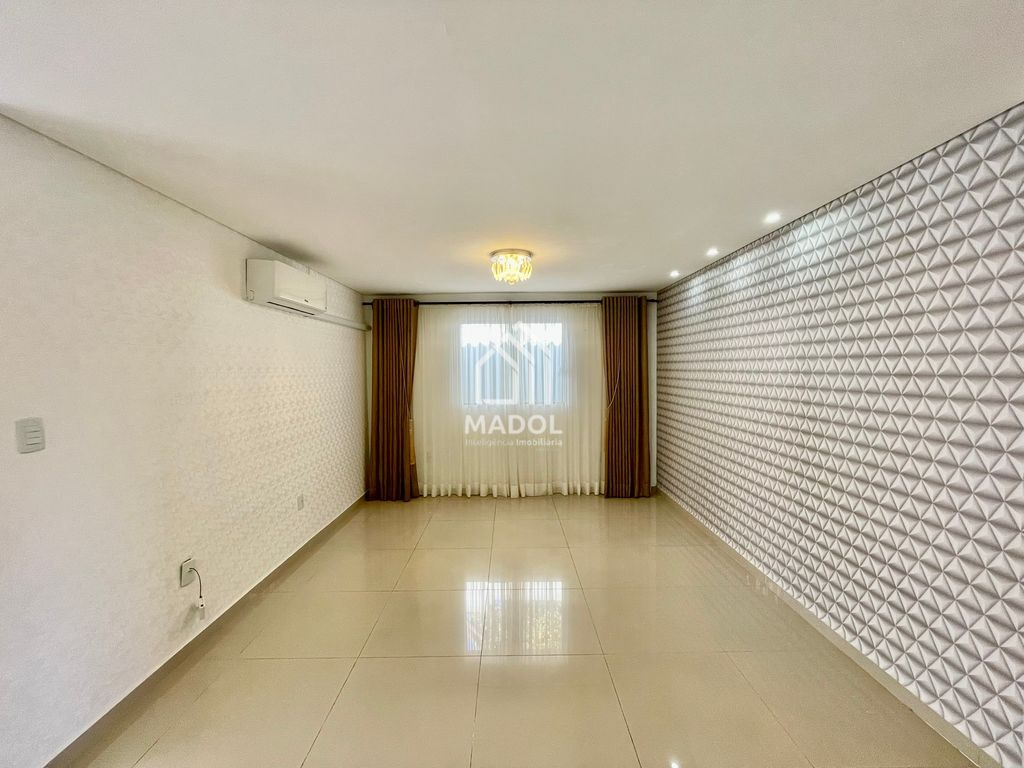 Sala de estar e jantar integradas, amplas e climatizadas com ar-condicionado.