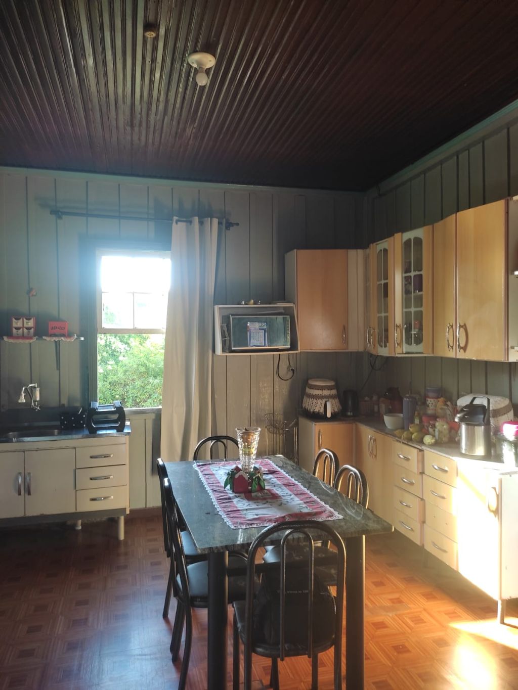 Uma residência contendo no piso térreo sala, cozinha, copa, 03 dormitórios, 01 banheiro social, lavanderia, garagem e no piso inferior contendo sala, cozinha, 02 dormitórios e 01 banheiro social mais uma residência tipo chalé nos fundos.