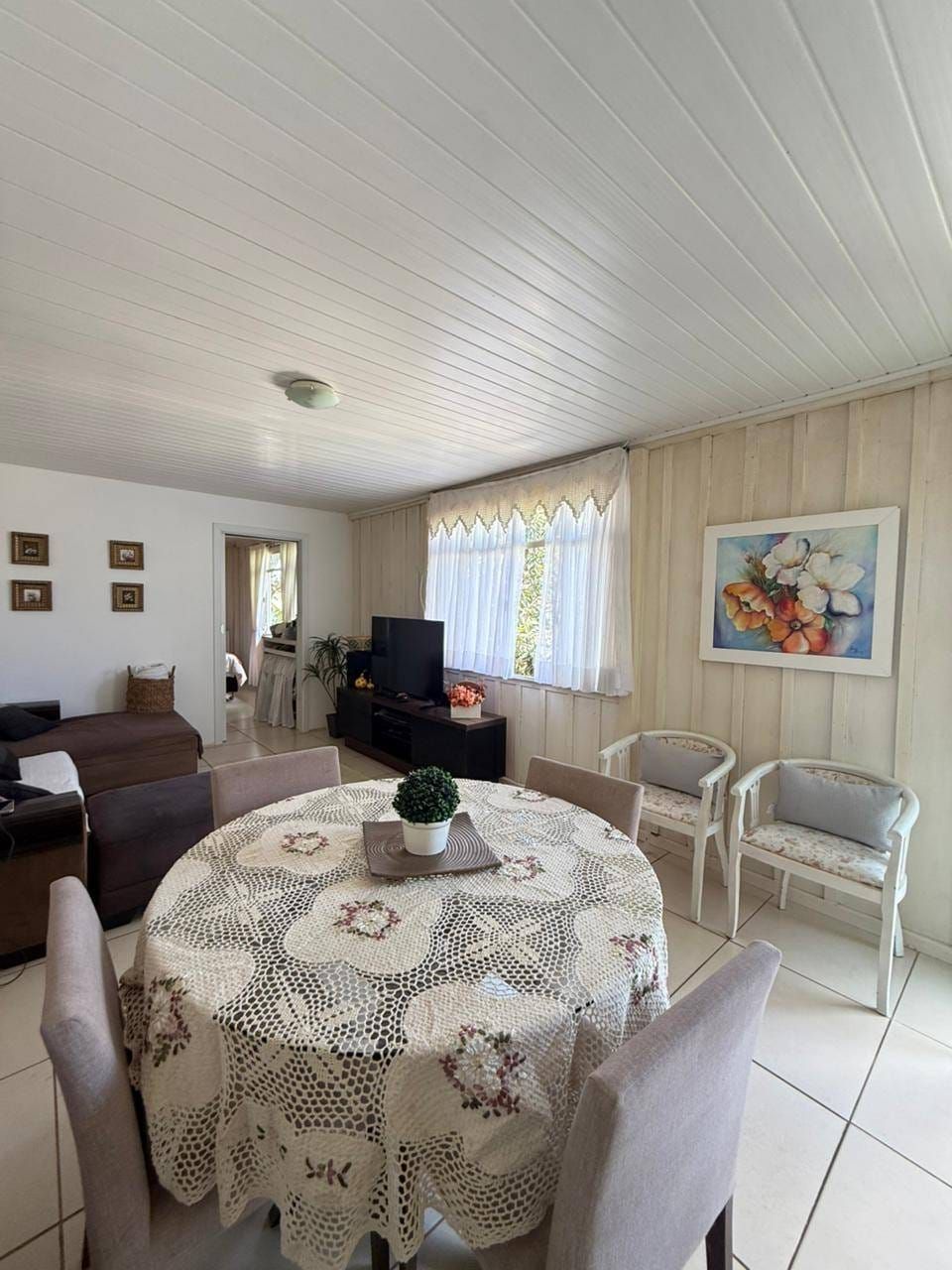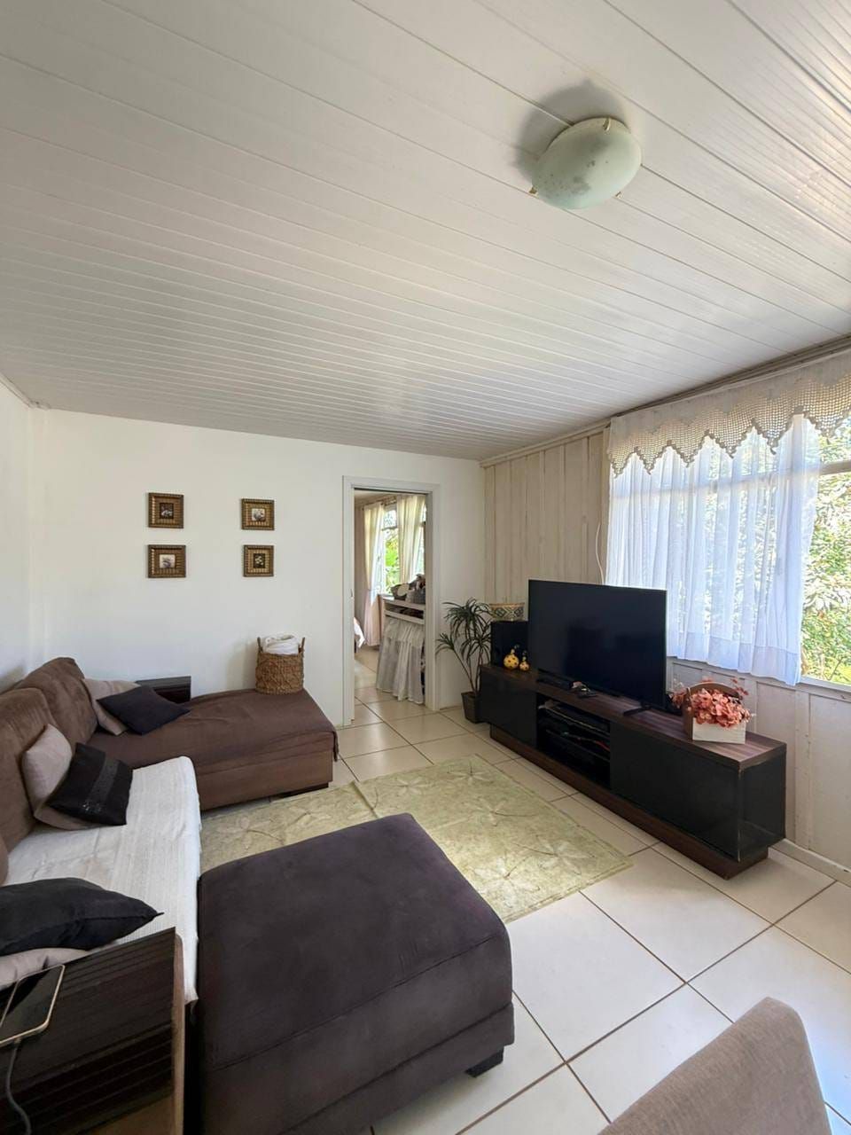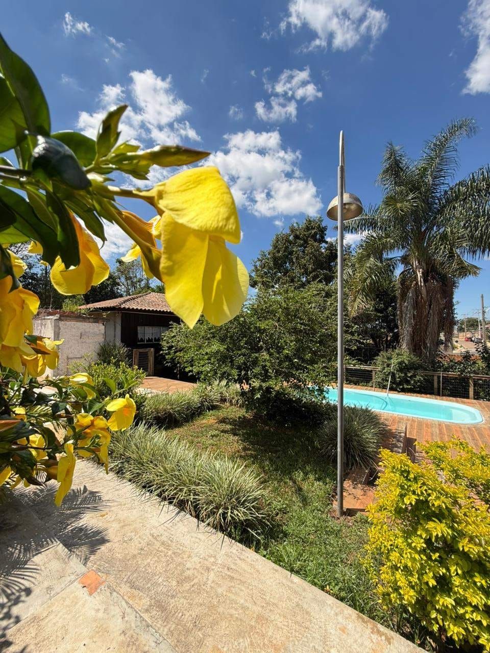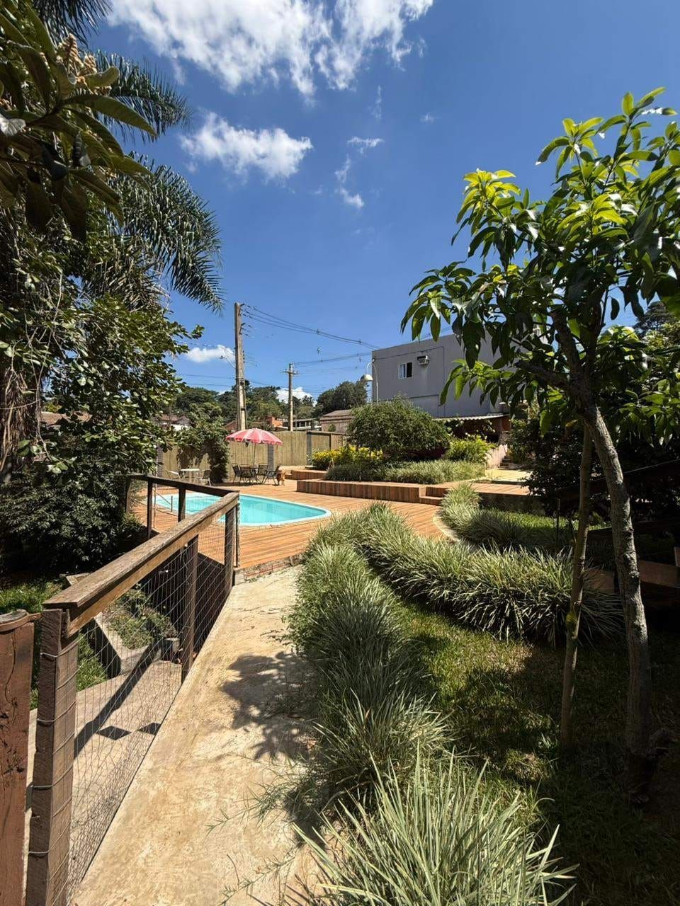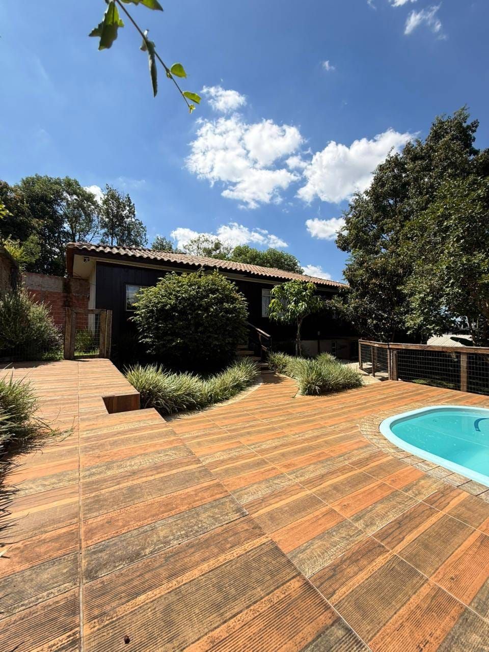 Casa mista com aproximadamente 52 metros quadrados, contendo: 01 quarto, sala de estar integrada a sala de jantar e a cozinha com planejados, banheiro social, área de serviço, garagem coberta para dois carros, churrasqueira, piscina, lago de peixes, banheiro social, um quarto que serve como depósito inacabado, salão aberto e amplo espaço de quintal.