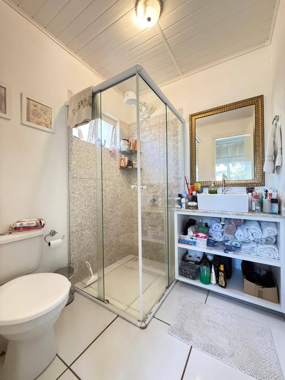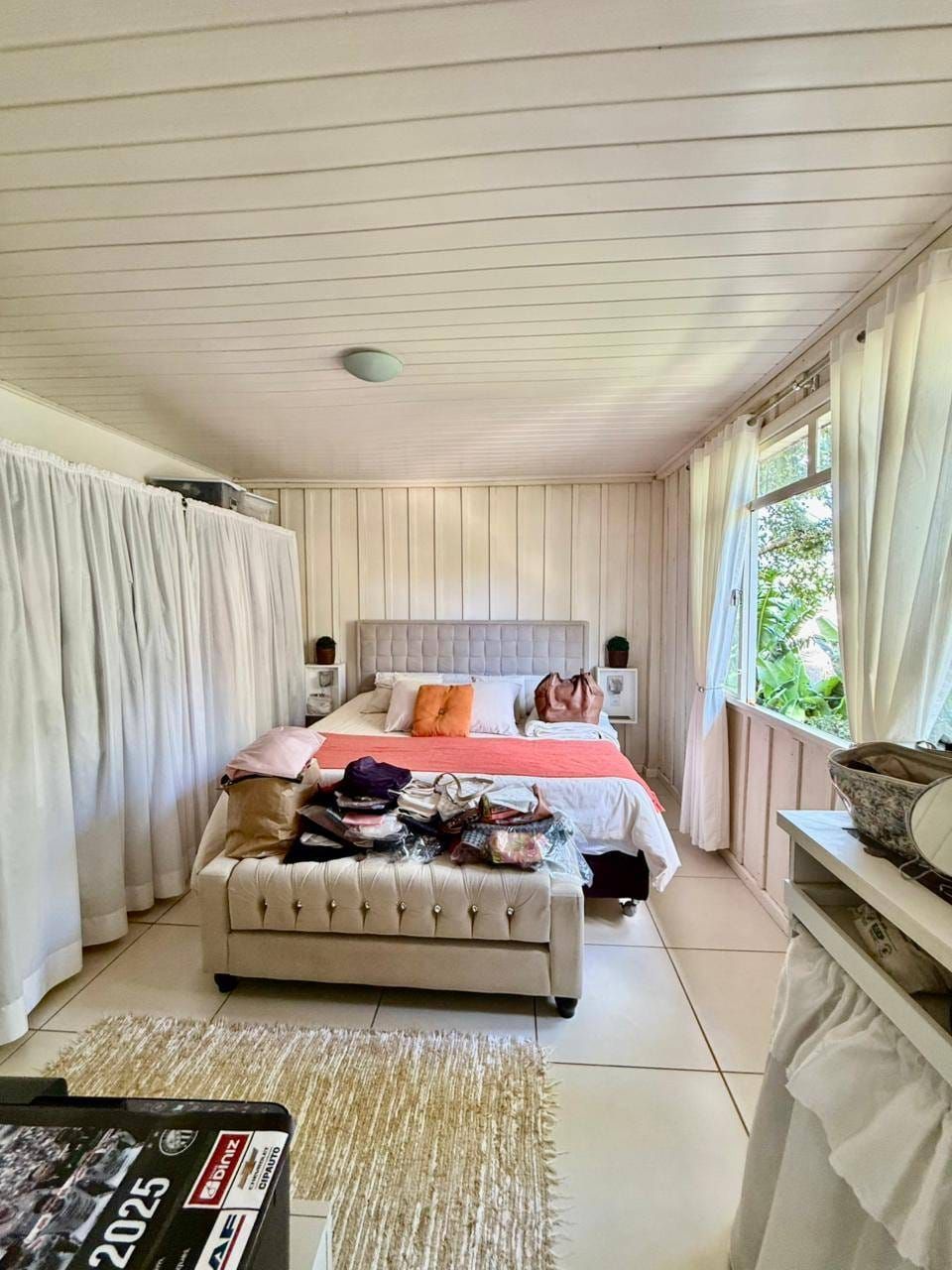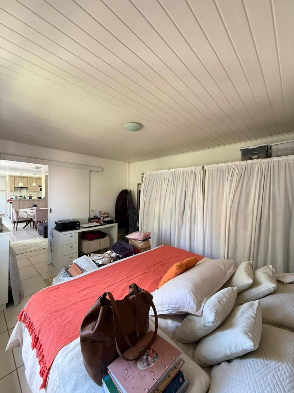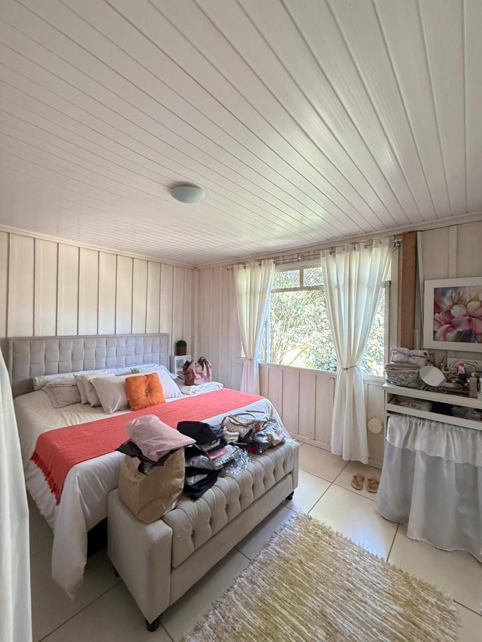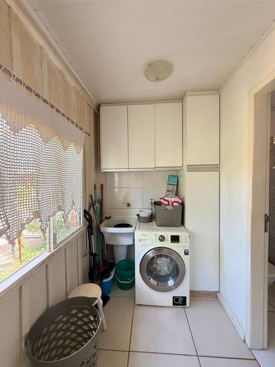 Casa mista com aproximadamente 52 metros quadrados, contendo: 01 quarto, sala de estar integrada a sala de jantar e a cozinha com planejados, banheiro social, área de serviço, garagem coberta para dois carros, churrasqueira, piscina, lago de peixes, banheiro social, um quarto que serve como depósito inacabado, salão aberto e amplo espaço de quintal.