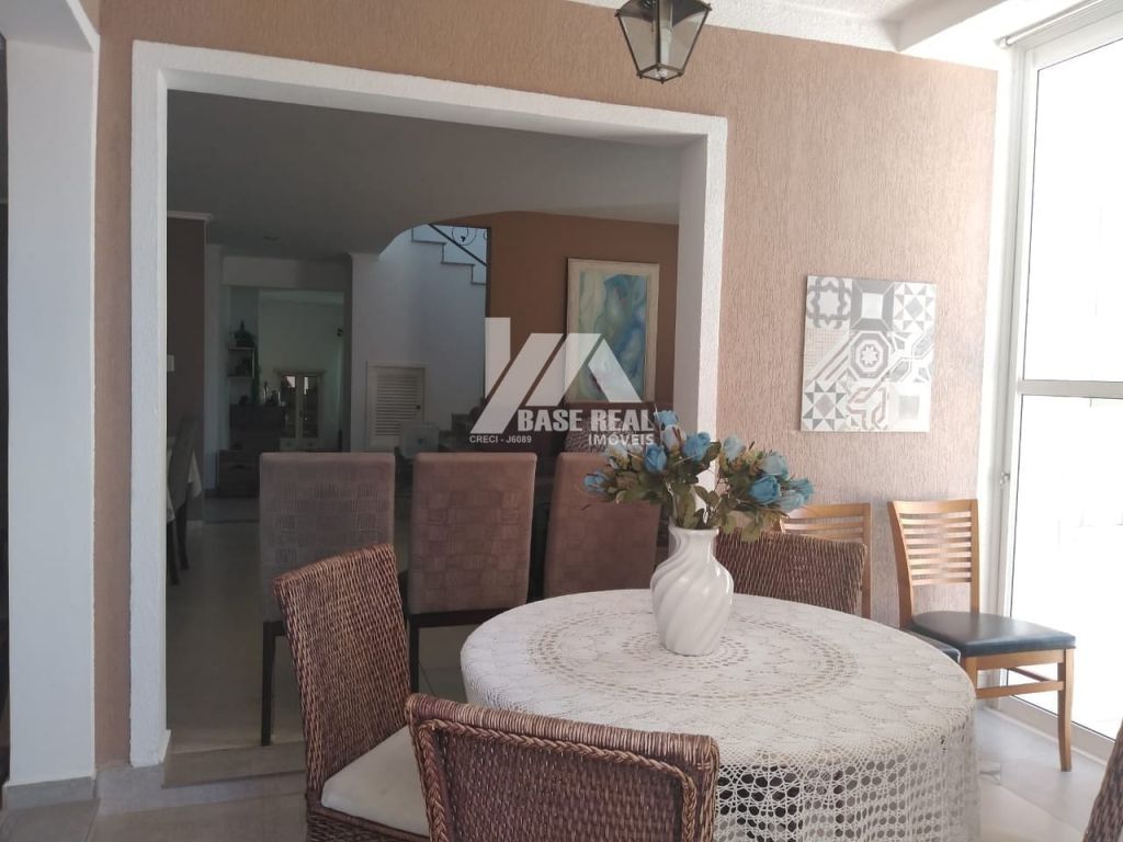 Residência em condomínio fechado semi mobiliada, contendo 04 quartos (sendo 01 suíte com closet e sacada e 01 quarto térreo), sala de estar com lareira, sala de jantar, espaço gourmet com churrasqueira, lavabo, escritório, banheiro social, cozinha com móveis planejados, despensa, área de serviço, banheiro de empregada, varal com cobertura em vidro, 02 vagas de garagem cobertas e mais 02 na rampa. Detalhes: Piso em porcelanato, aquecimento elétrico e gás, espaço para instalação de piscina. O condomínio oferece portaria 24 horas, salão de festas mobiliado e decorado, salão de jogos, espaço gourmet mobiliado, quadra de tênis, quadra poliesportiva, playground.