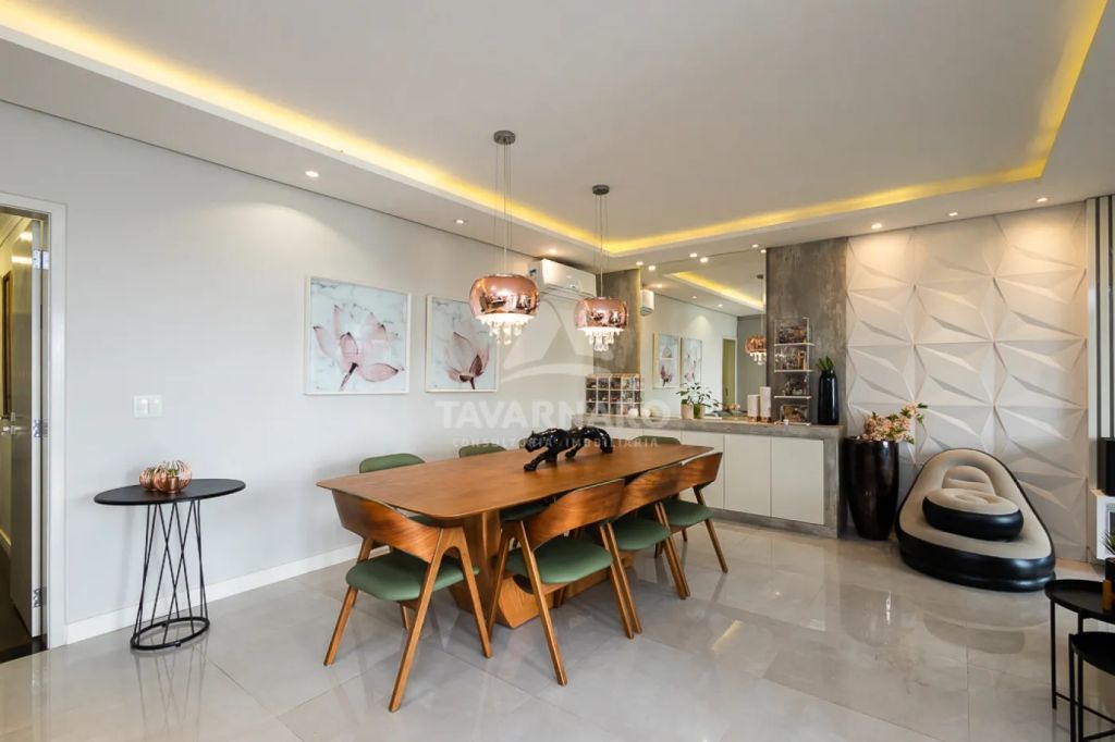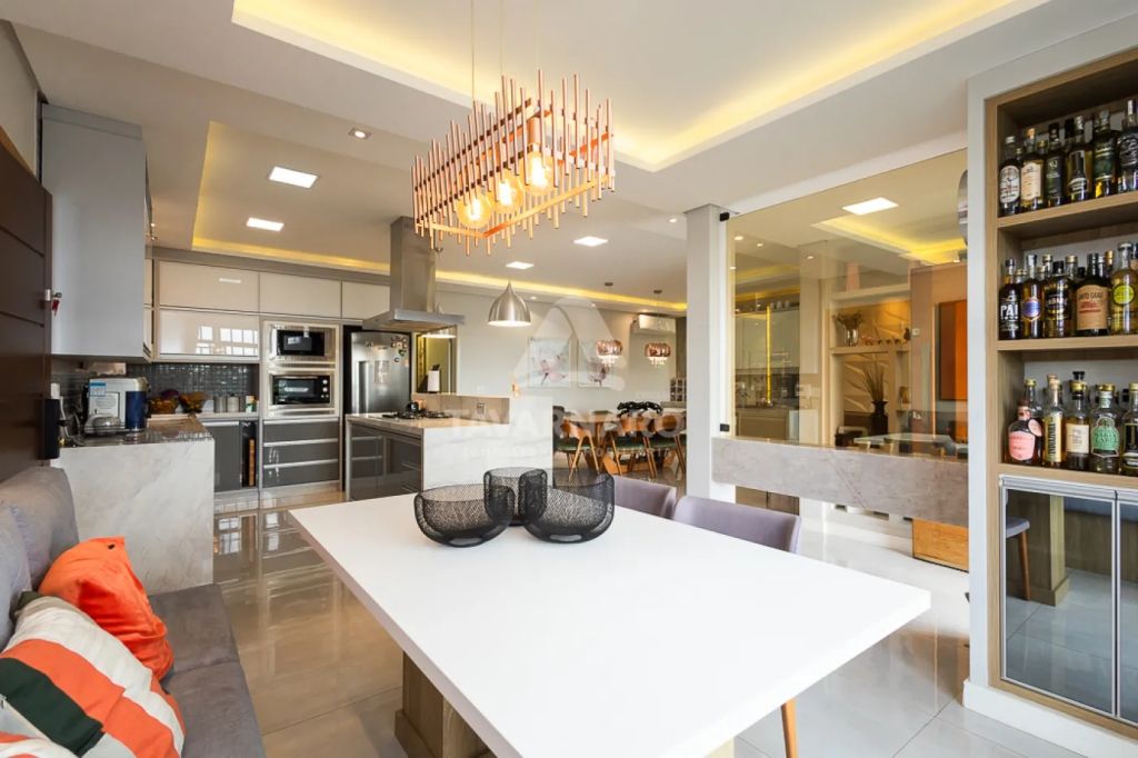 Distribuída em sala de estar e jantar integradas a cozinha em ilha, 3 quartos, sendo 1 suíte com closet e banheiro com hidromassagem.