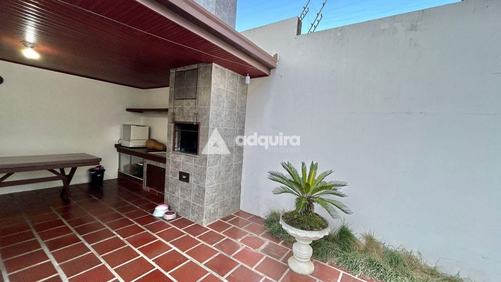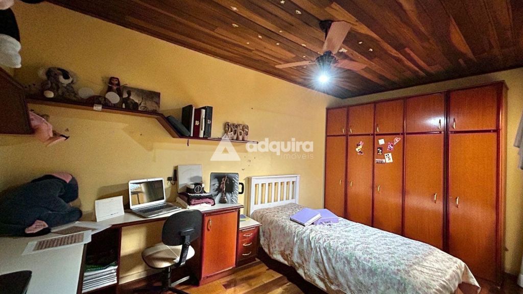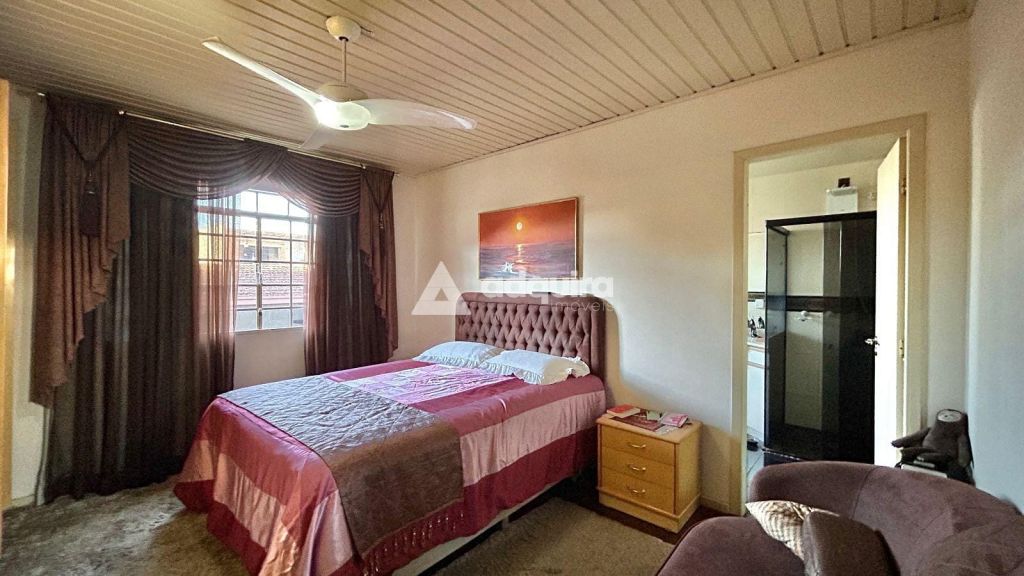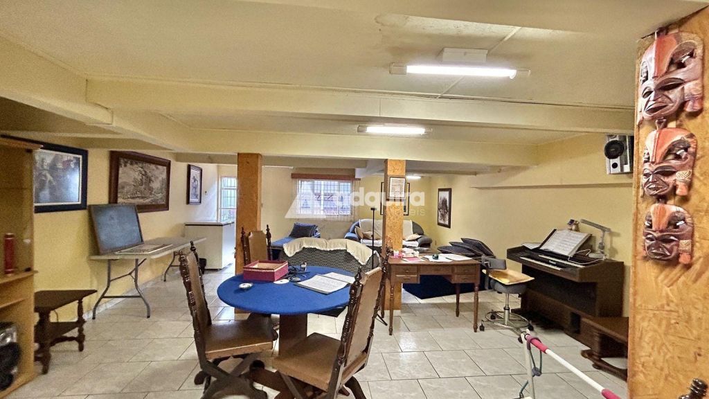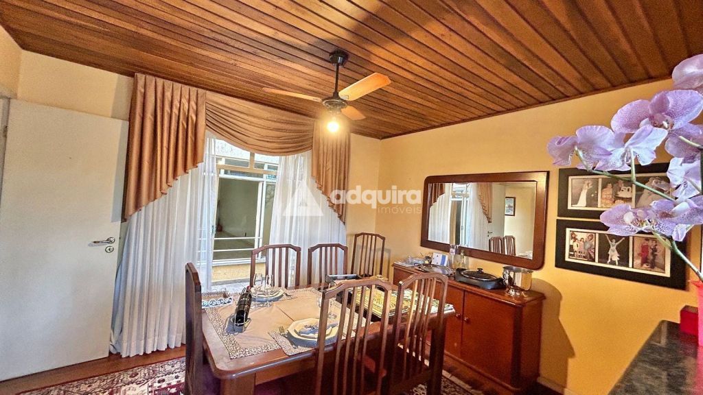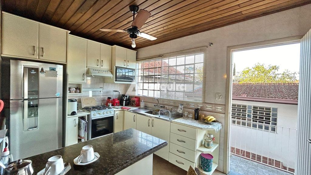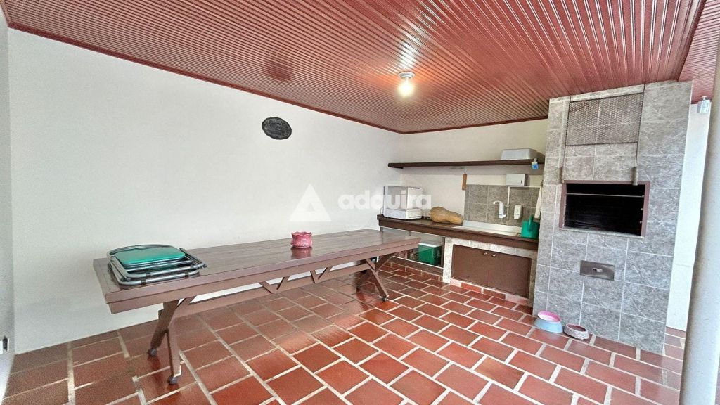 A parte residencial conta com três quartos, incluindo uma ampla suíte master com hidromassagem, além de mais dois banheiros. A casa possui duas vagas cobertas e destaca-se pelos acabamentos nobres: assoalhos, forros e vigamentos em imbuía, além de móveis embutidos em madeira original, conferindo charme e autenticidade aos ambientes.