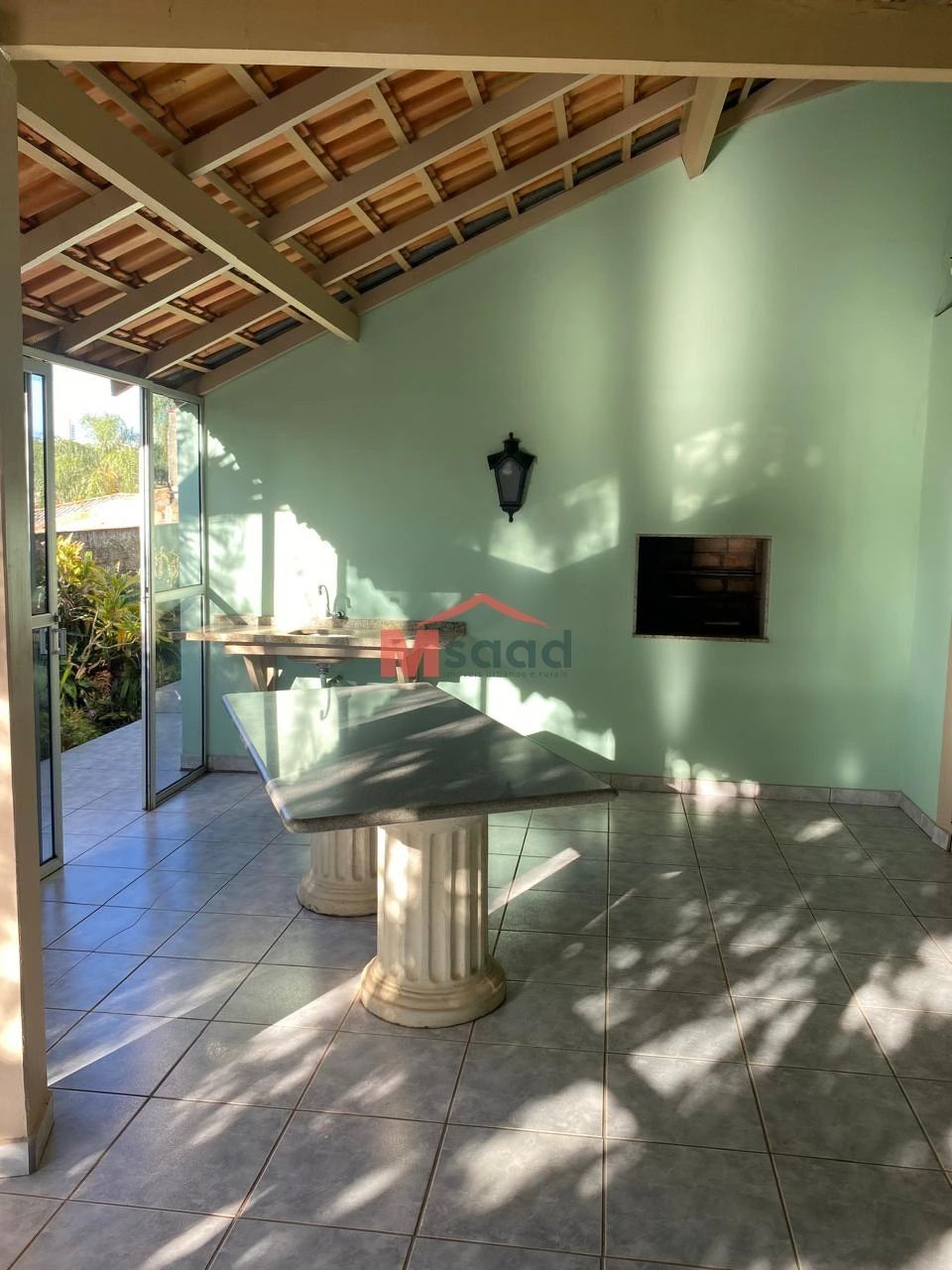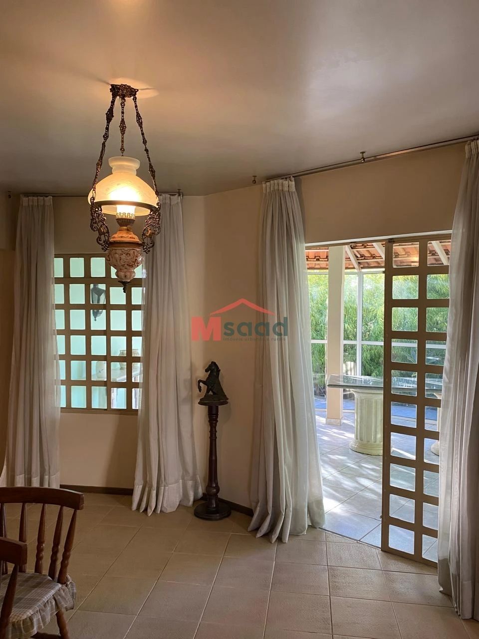-Sala de estar;-Sala de jantar com lareira;-3 quarto (sendo 1 suíte);-Cozinha c/ armários embutidos;-Churrasqueira;-Bar;-Lavabo;-Banheiro social;-Lavanderia;-Dependência de funcionária.