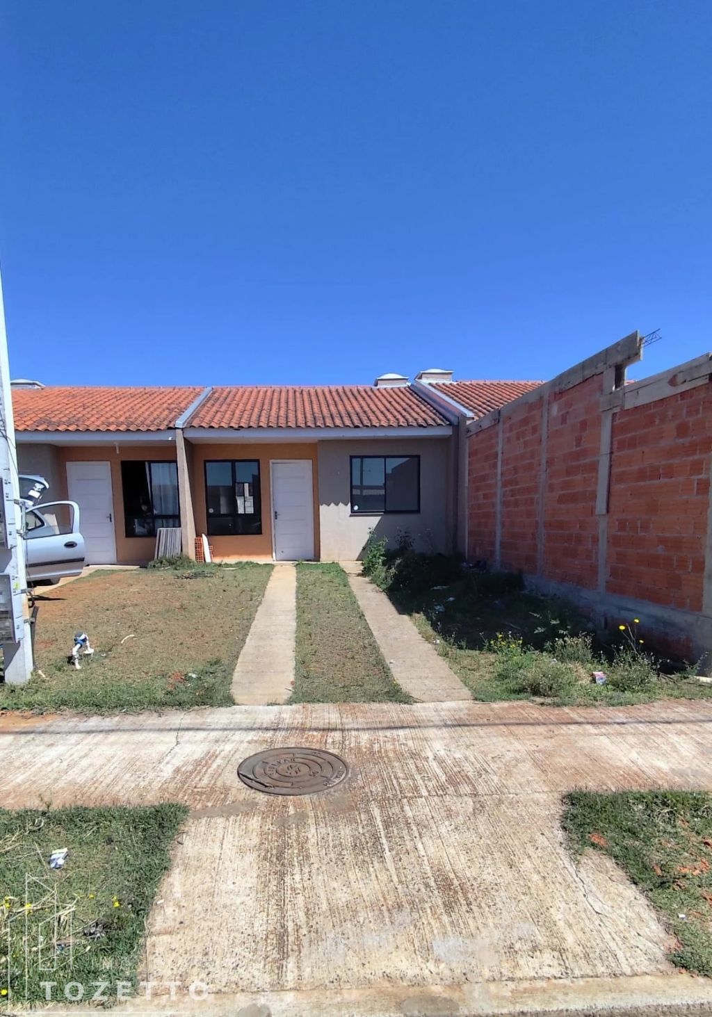 2 quartos amplos, sala e cozinha em conceito aberto, banheiro amplo com poço de luz, área de serviços coberta, amplo espaço de fundos com muro, ideal para futuras ampliações e vaga para até 2 carros;