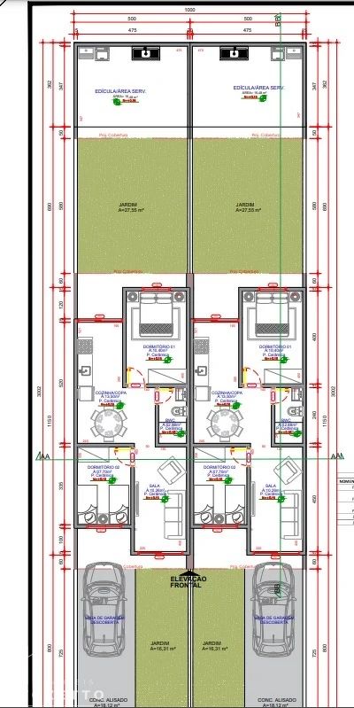 Jardim frontal, proporcionando um visual agradável e verde na entrada da casa