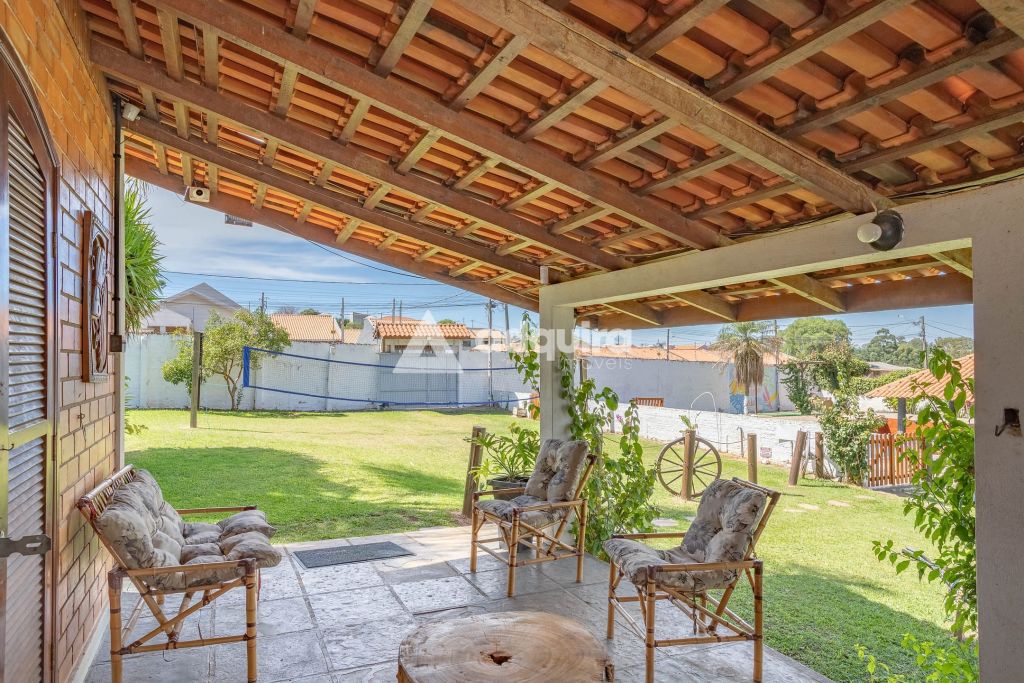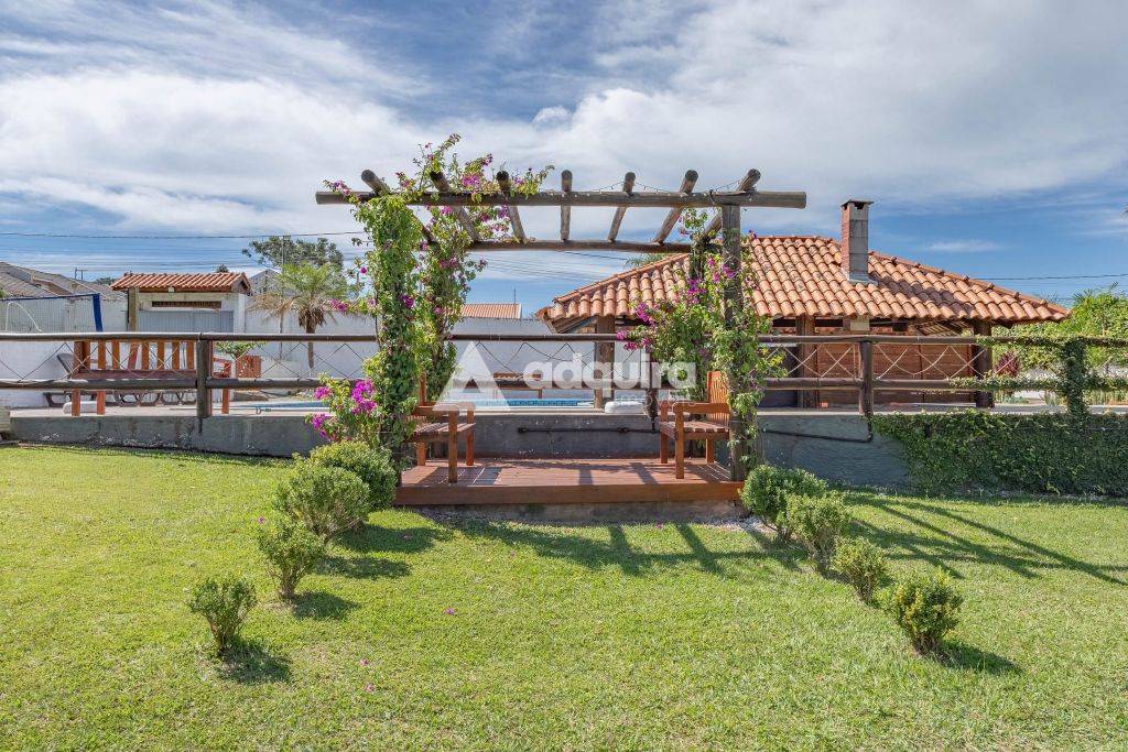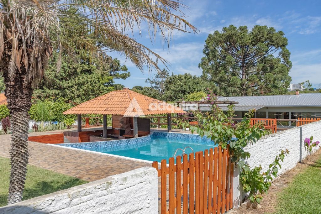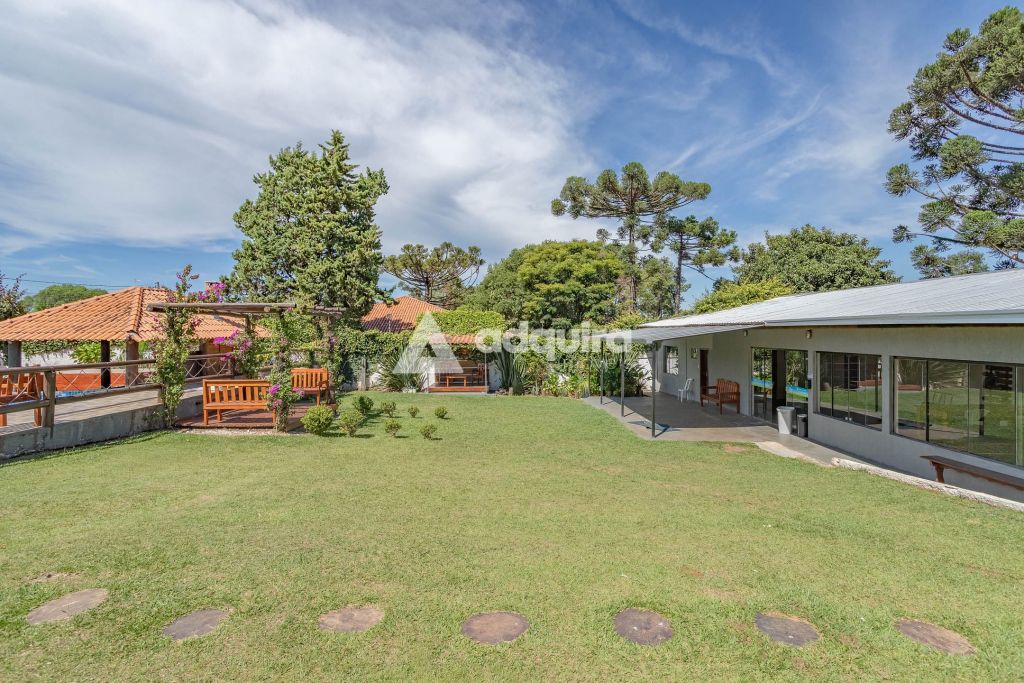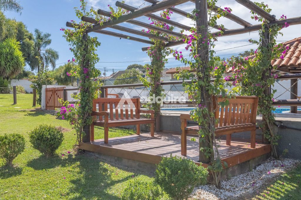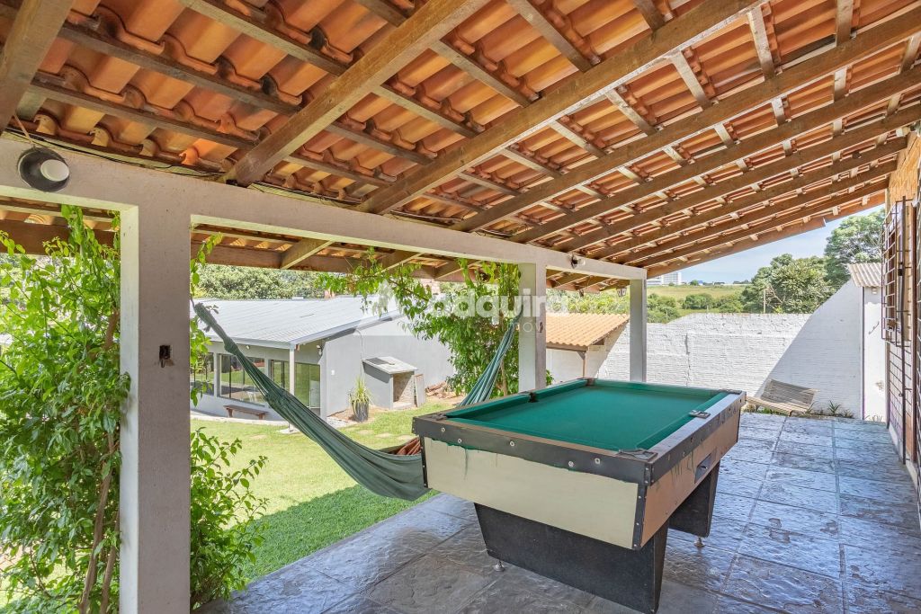 Na área externa, a estrutura se destaca pelas múltiplas opções de convivência. O projeto contempla uma piscina de 50m² com acesso direto a um quiosque prático com churrasqueira. Além disso, a chácara oferece um segundo espaço gourmet independente e bastante amplo de 100m², quadra de vôlei, pergolados, diversas áreas de descanso, depósito e um pátio generoso para estacionamento.