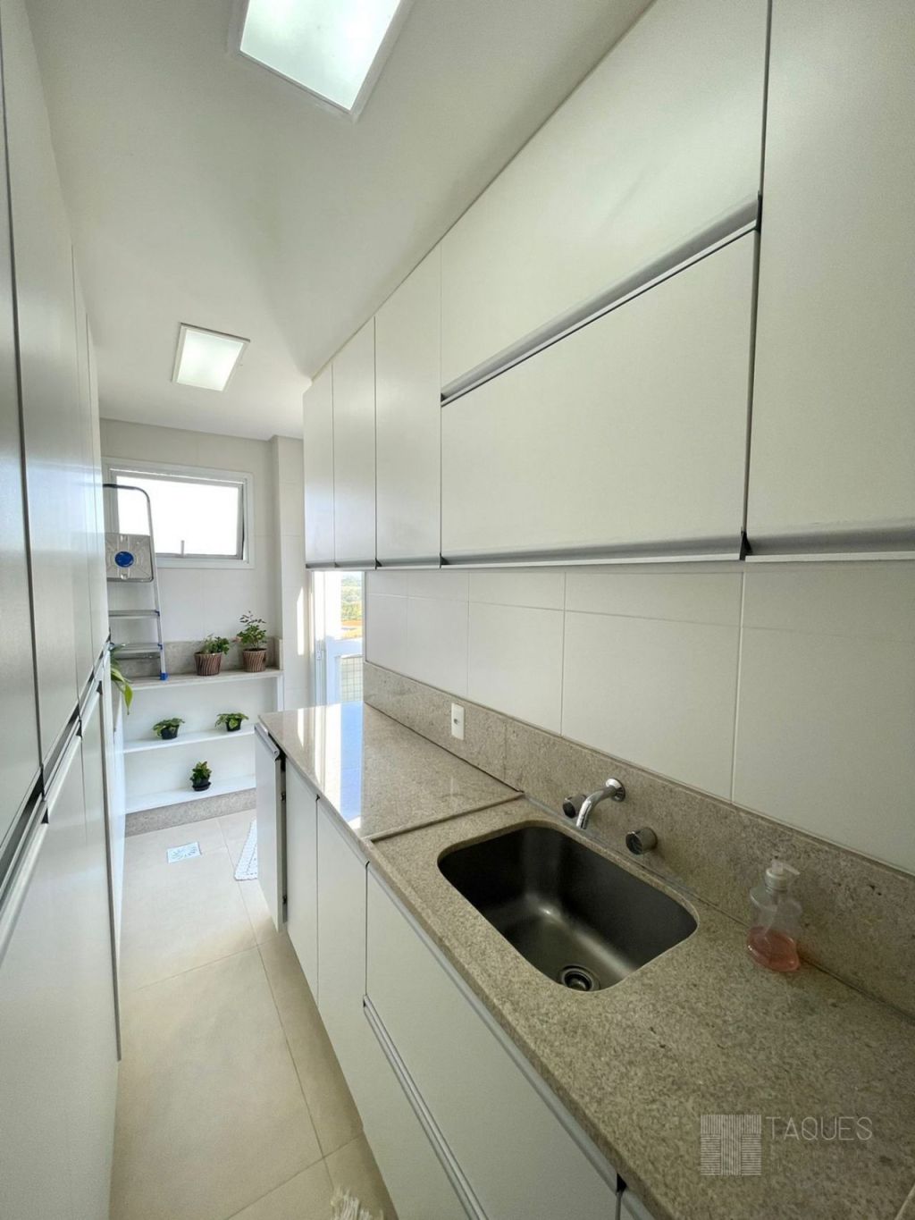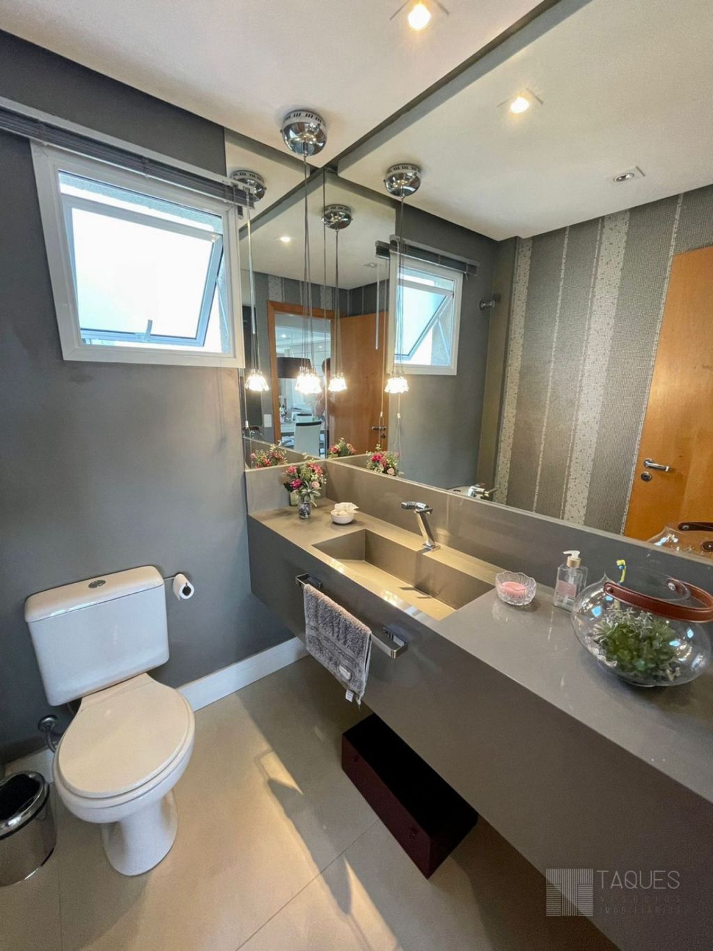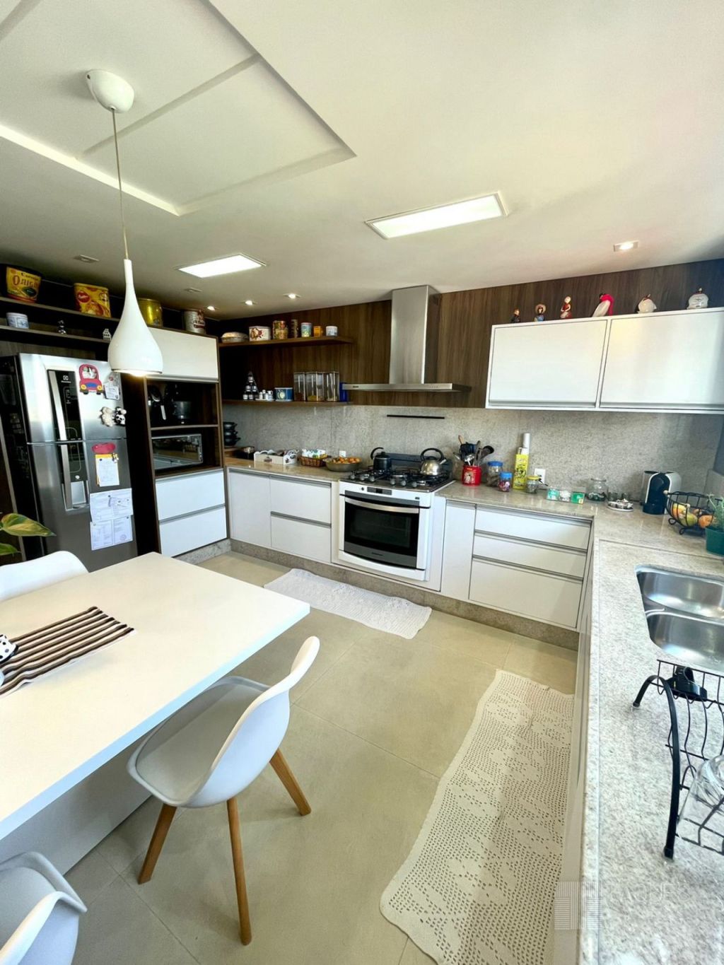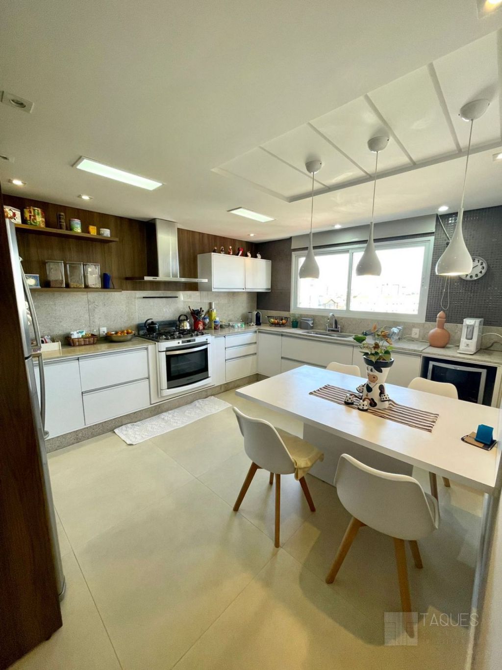 Na parte superior do imóvel uma ampla sala de estar integrada com área gourmet, lavabo, cozinha com móveis planejados, lavanderia com armários e um espetacular terraço com a vista para a cidade. Agende sua visita!!