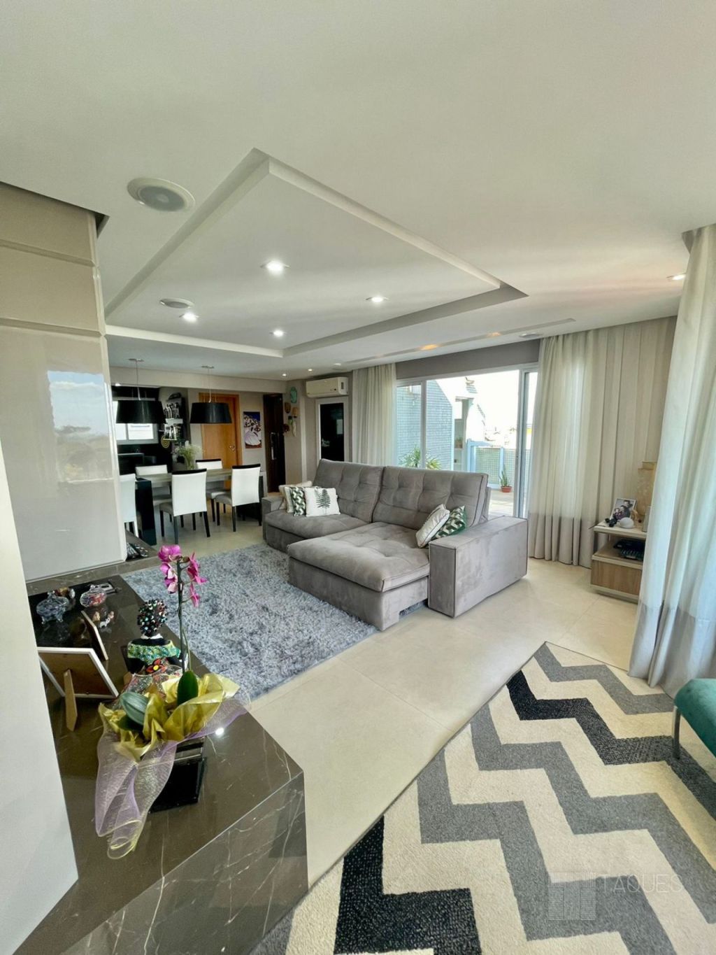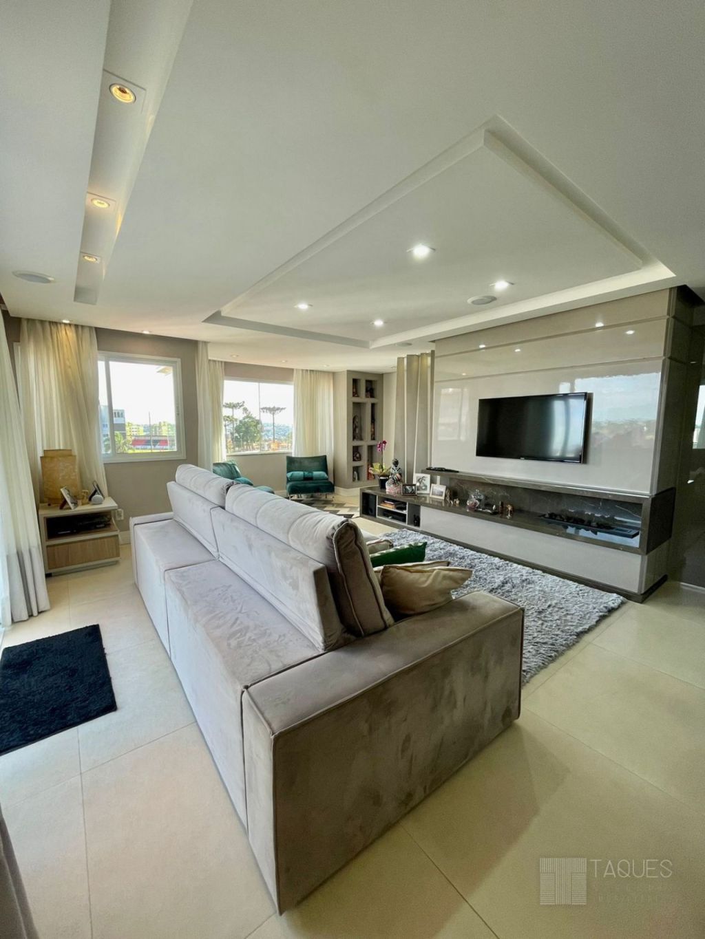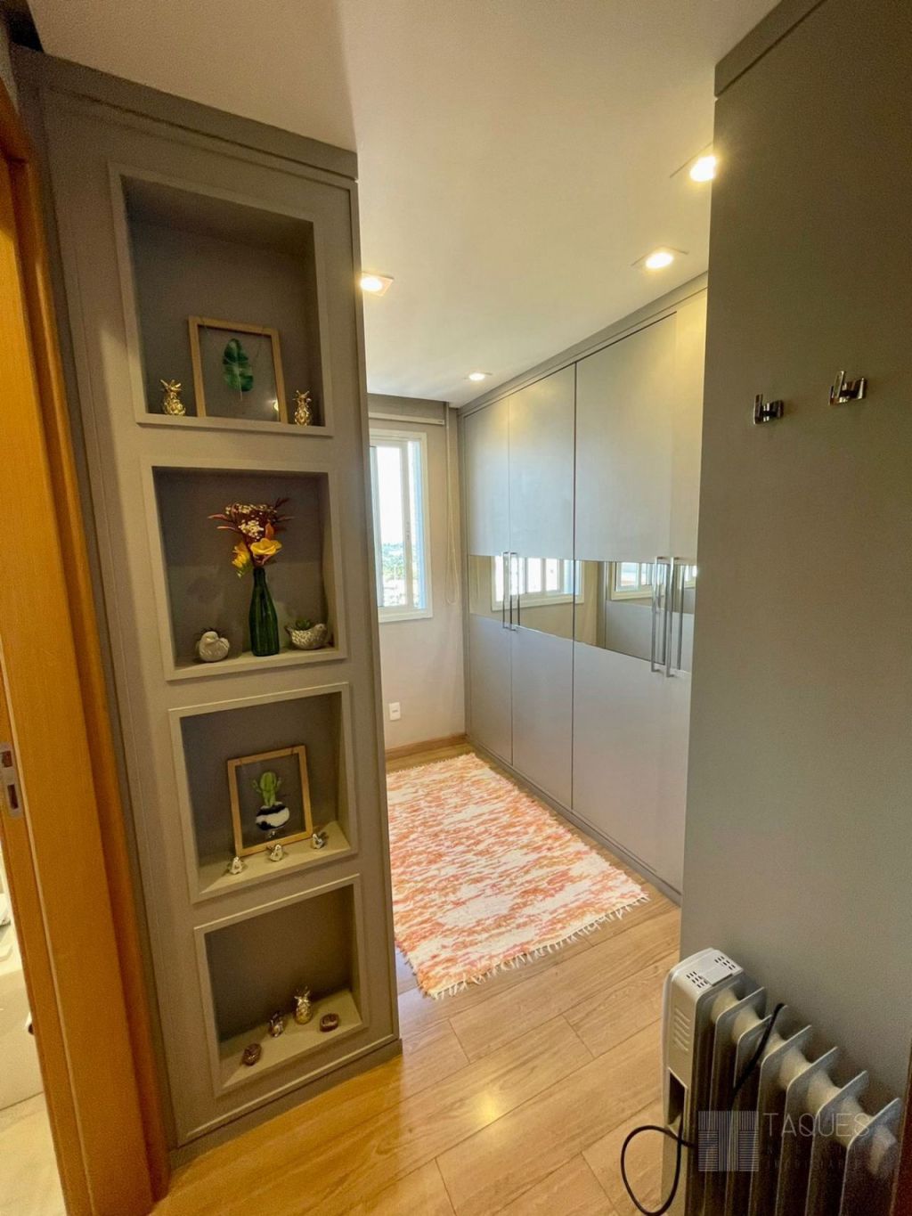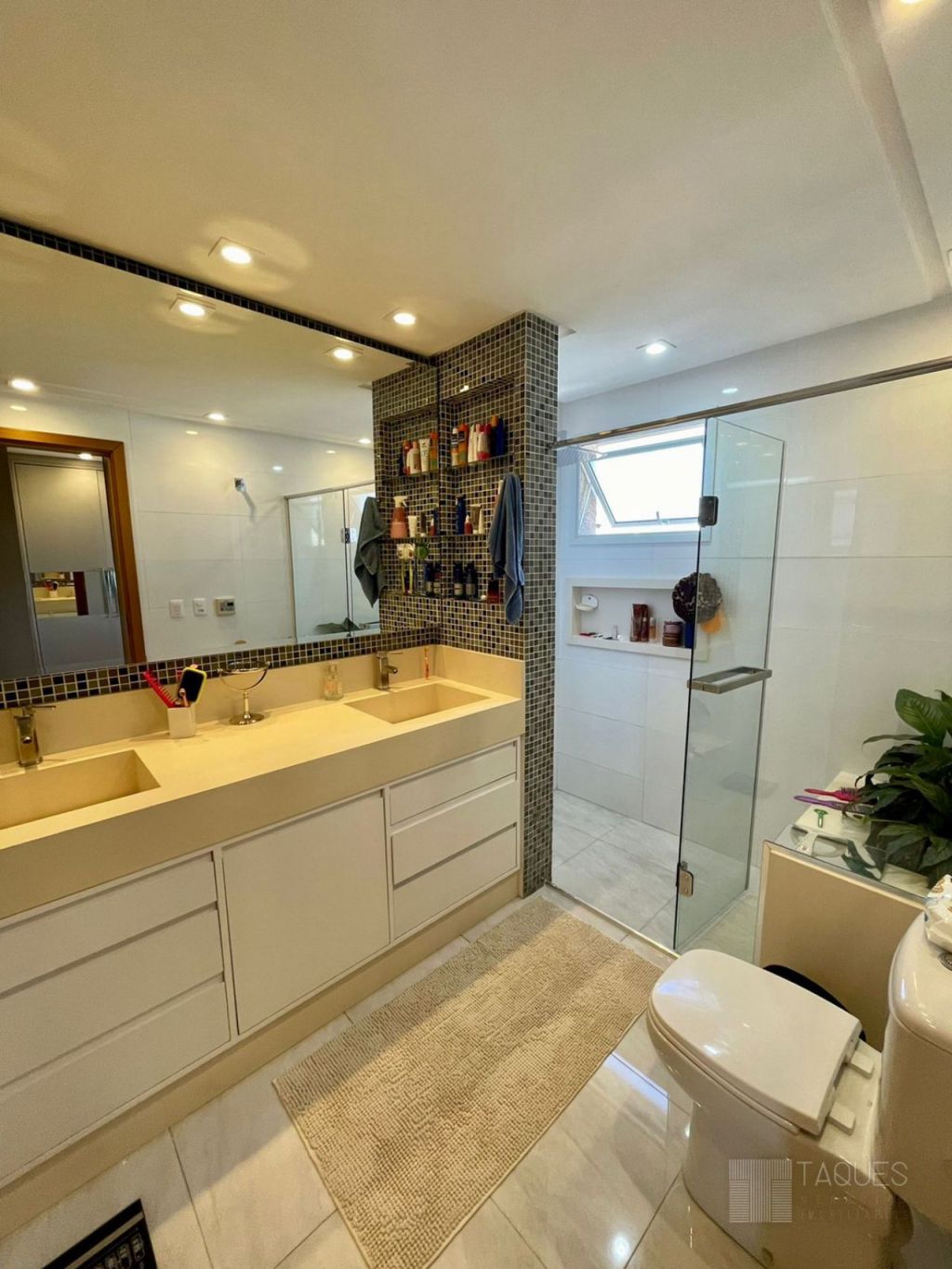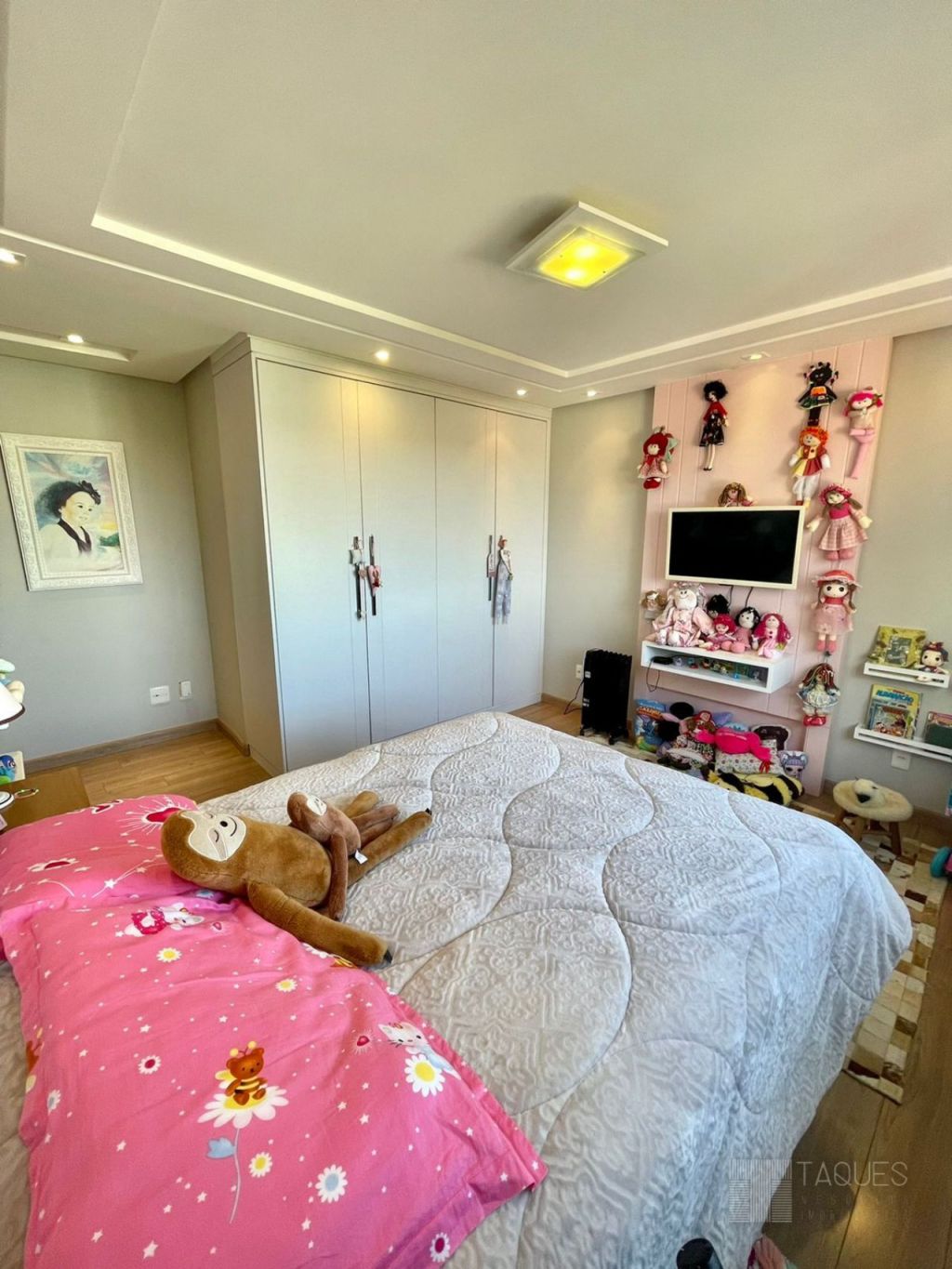 Imóvel duplex, contendo na parte inferior três suítes ( sendo uma master com closet), todos com armários planejados de fino acabamento. Ainda no mesmo piso temos um espaço living-room, onde pode ser utilizado como escritório ou brinquedoteca.