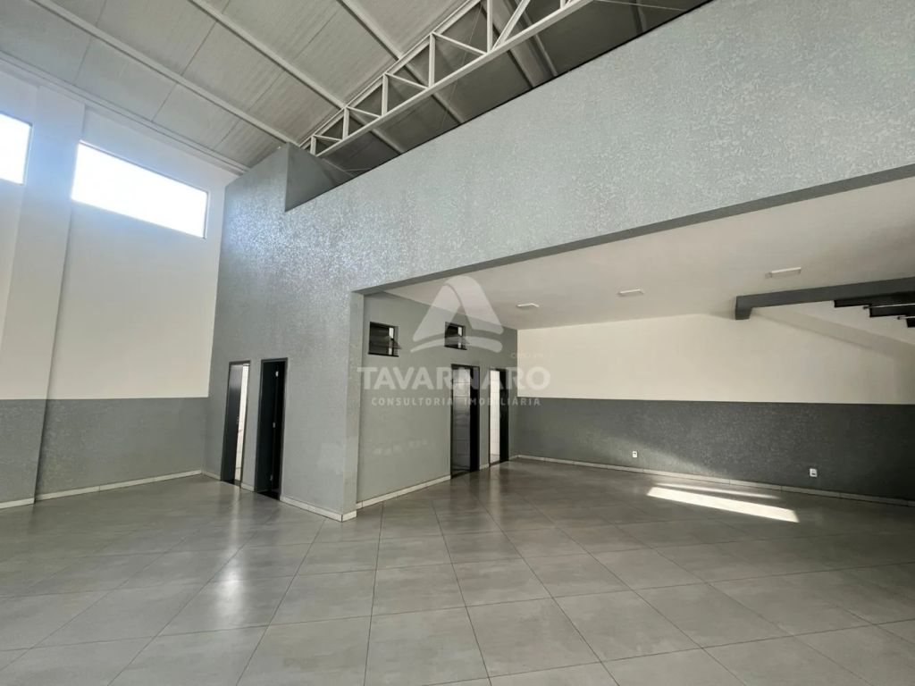Com uma área total de 420,46m² possui dois mezaninos, frente e fundos, com pé direito no meio do salão de 6 metros, conta com uma copa, 3 banheiros sendo 1 adaptado para PNE. Vaga de estacionamento rotativa para até 5 carros.