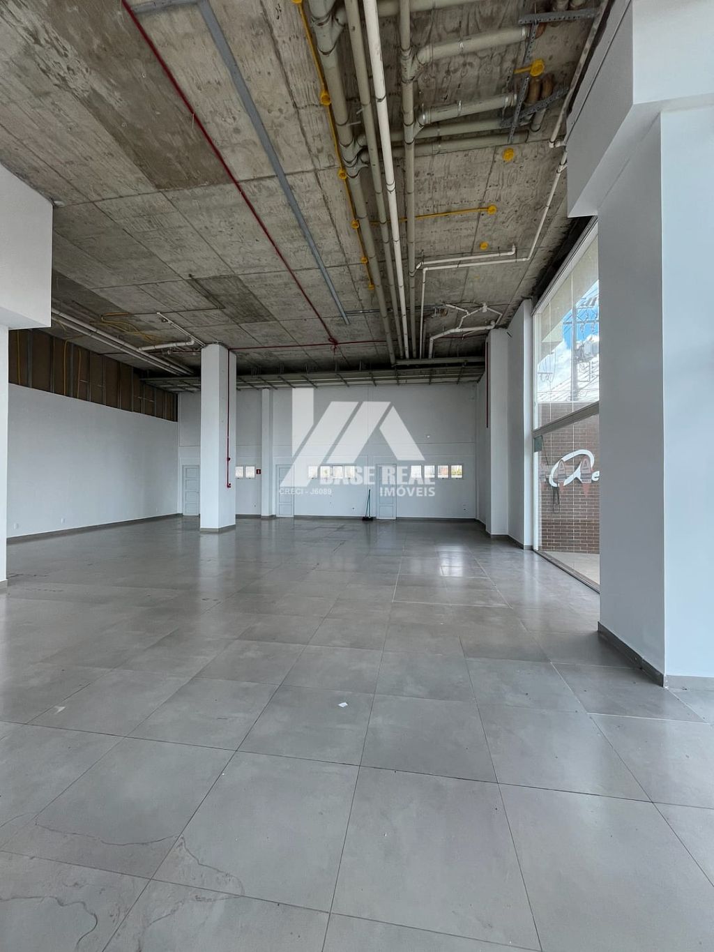 A área interna da sala é distribuída de forma funcional, com pé direito duplo que confere amplitude ao ambiente. Os revestimentos em porcelanato e a central de ar-condicionado proporcionam conforto e praticidade ao dia a dia, tornando este um espaço acolhedor e propício para o desenvolvimento de diversas atividades comerciais.