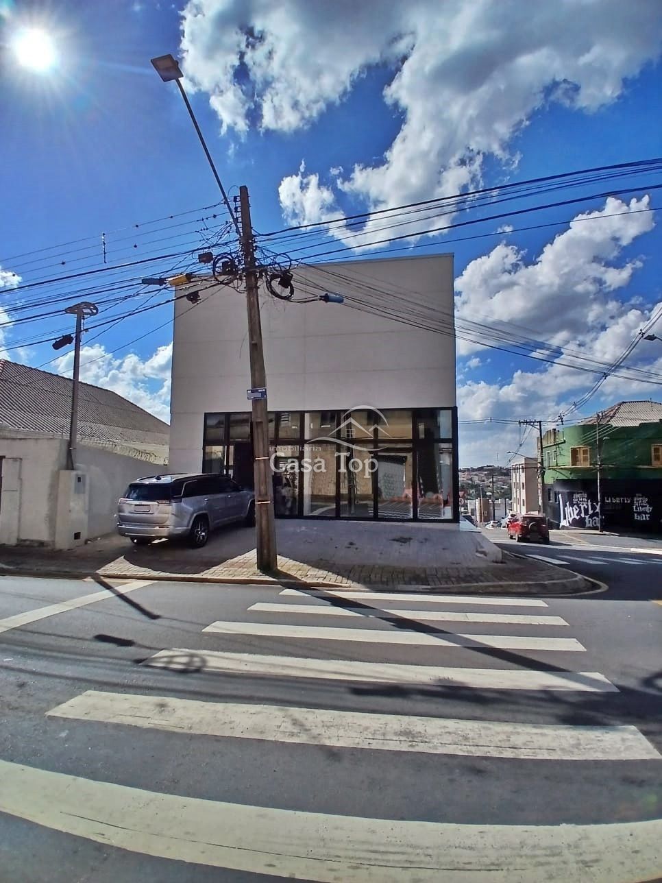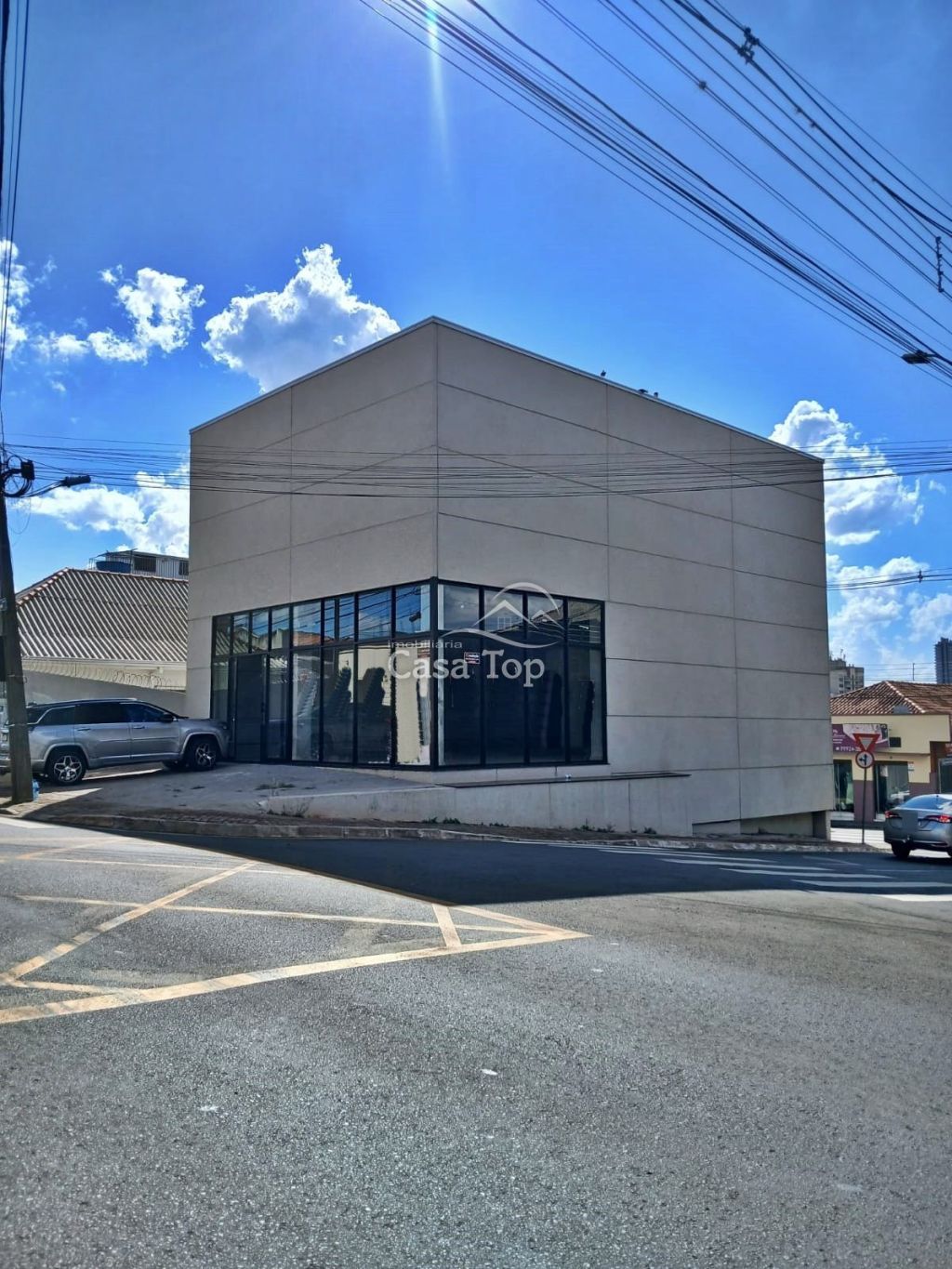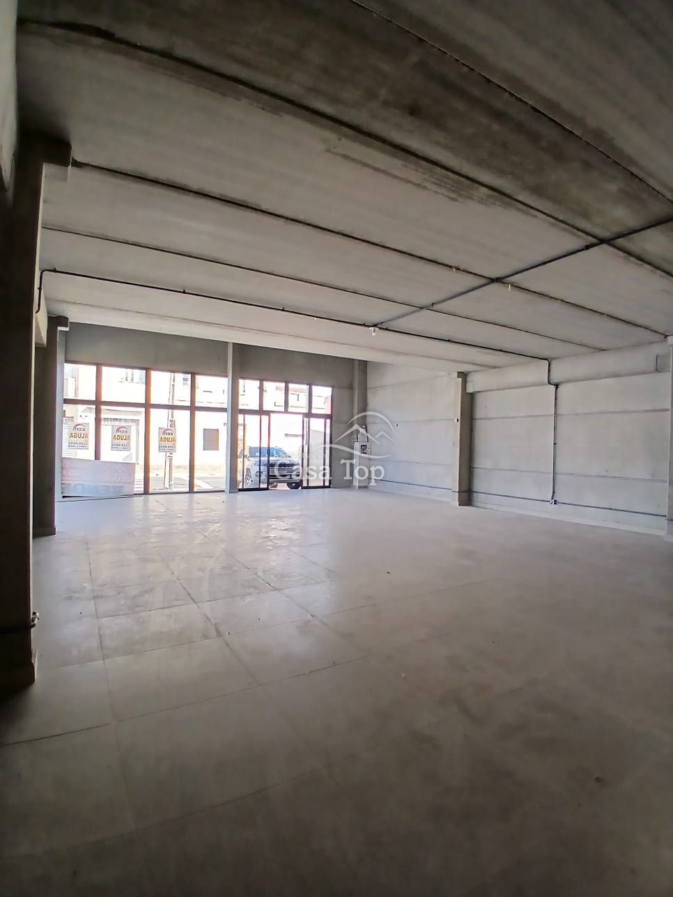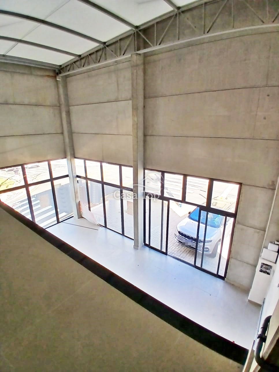 Amplo imóvel comercial medindo aprox. 200m², contendo mezanino, estacionamento próprio e 2 BWC sociais. Construção nova com pé direito alto e todo em vidro.