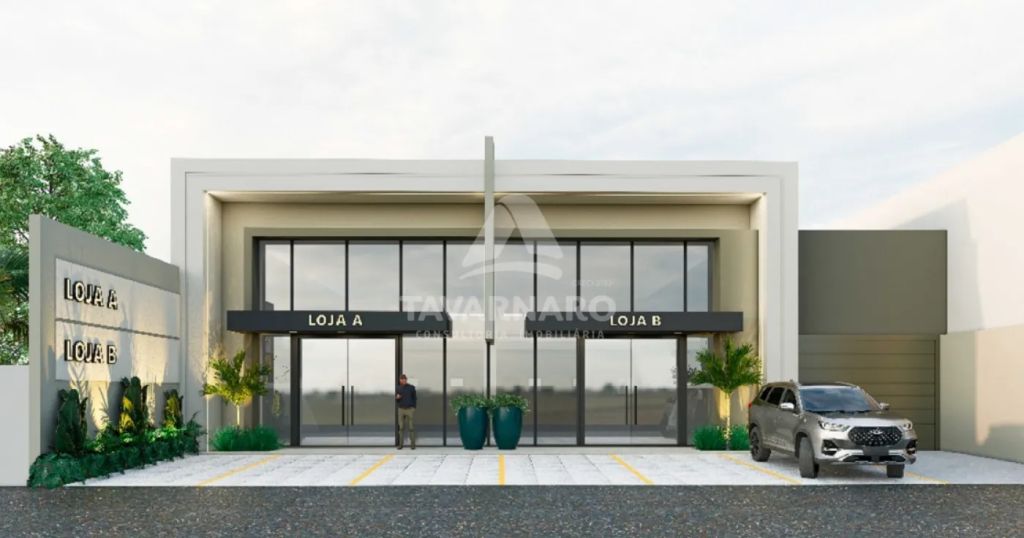 Loja nova, em obras, com 225m² de área construída, distribuídos em salão de atendimento, mezanino, 2 banheiros e 9 vagas de estacionamento.