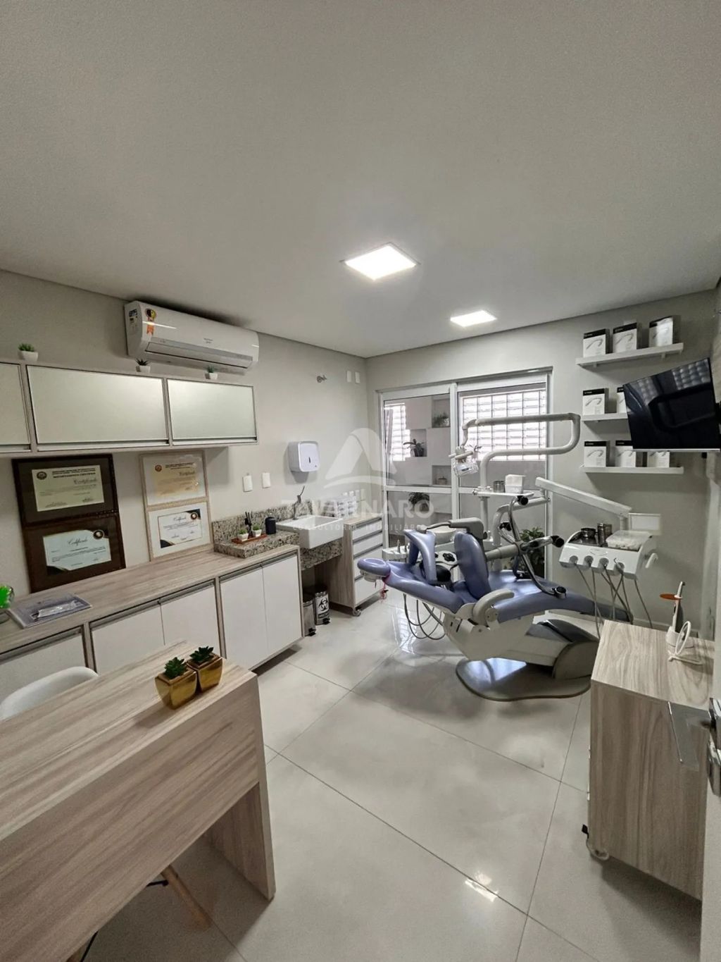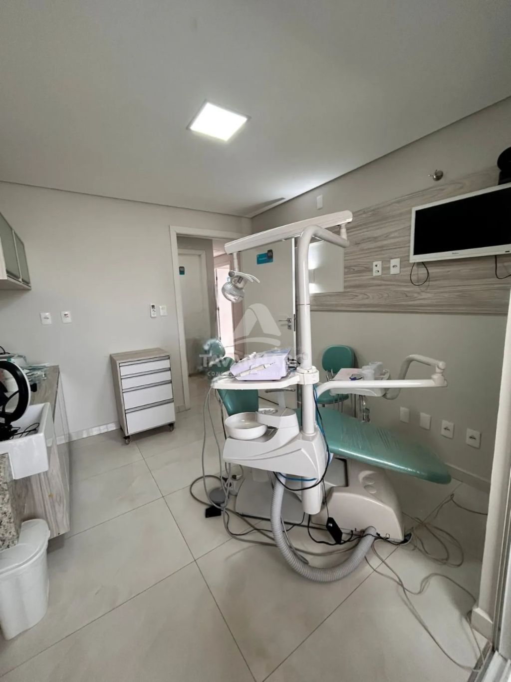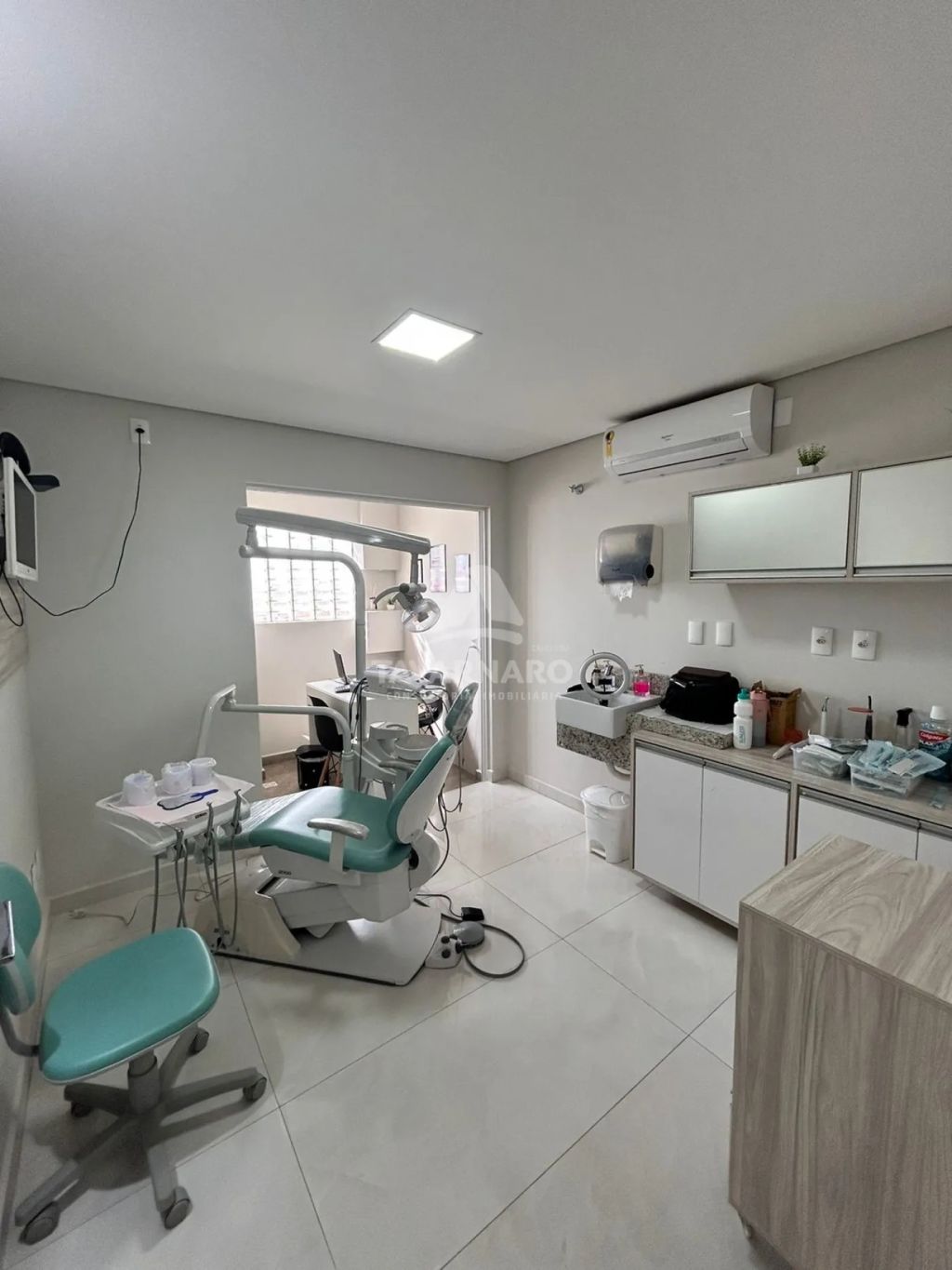 Excelente sala comercial, altos, com elevador, contendo hall de entrada, recepção com balcão, sala de espera e banheiro, 04 salas para atendimento, todas com já com ar condicionado, 02 banheiros, sala de esterilização, depósito, cozinha com planejados, área de serviço, terraço com área gourmet, vaga de garagem e estacionamento em frente ao estabelecimento para clientes.