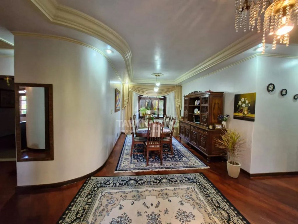 Casa com 5 dormitórios sendo 2 suítes, sala de estar, sala de jantar, copa, cozinha com armários, lavabo, banheiro social, 6 vagas de garagem, espaço gourmet com churrasqueira, piscina, quintal e jardim amplos.