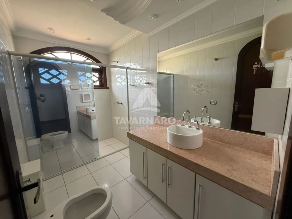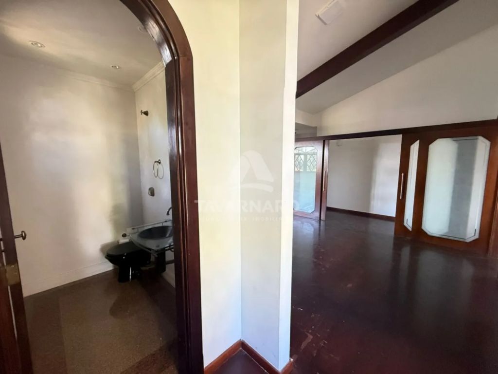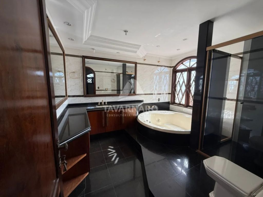 O espaço conta com 13 salas, sendo 4 com banheiros privativos, e uma delas com lareira. Possui ainda 8 banheiros no total, cozinha com móveis planejados, cozinha gourmet, lavanderia e garagem descoberta para 4 carros.