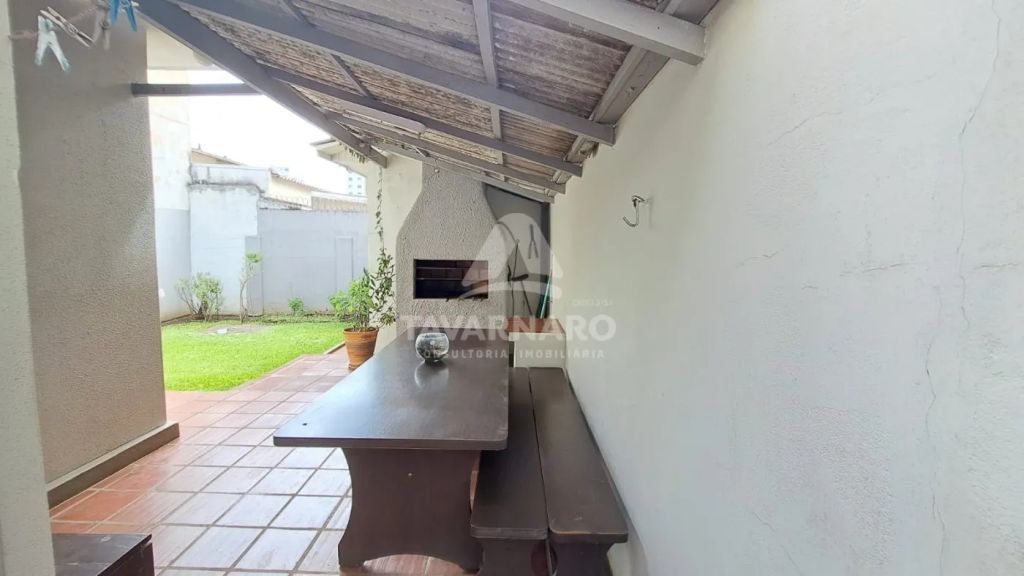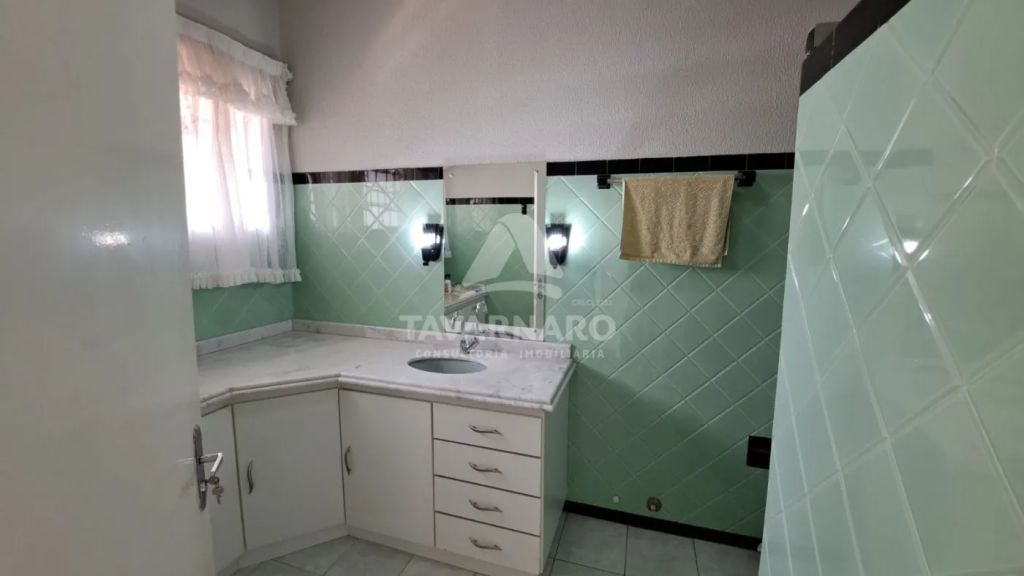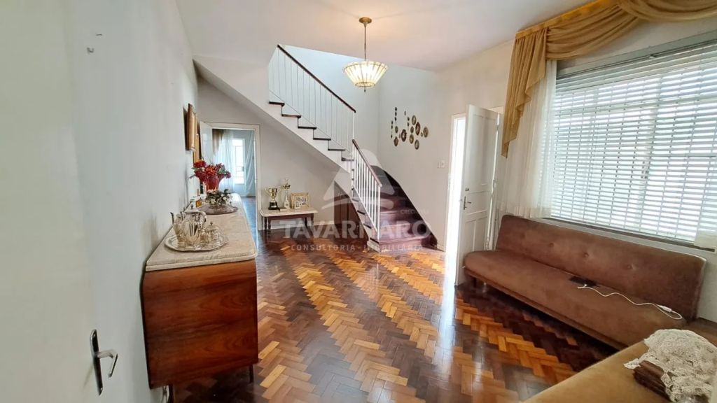 Piso inferior: 3 salas, cozinha, lavabo, despensa, sobra de terreno nos fundos, com lavanderia, despejo e churrasqueira;