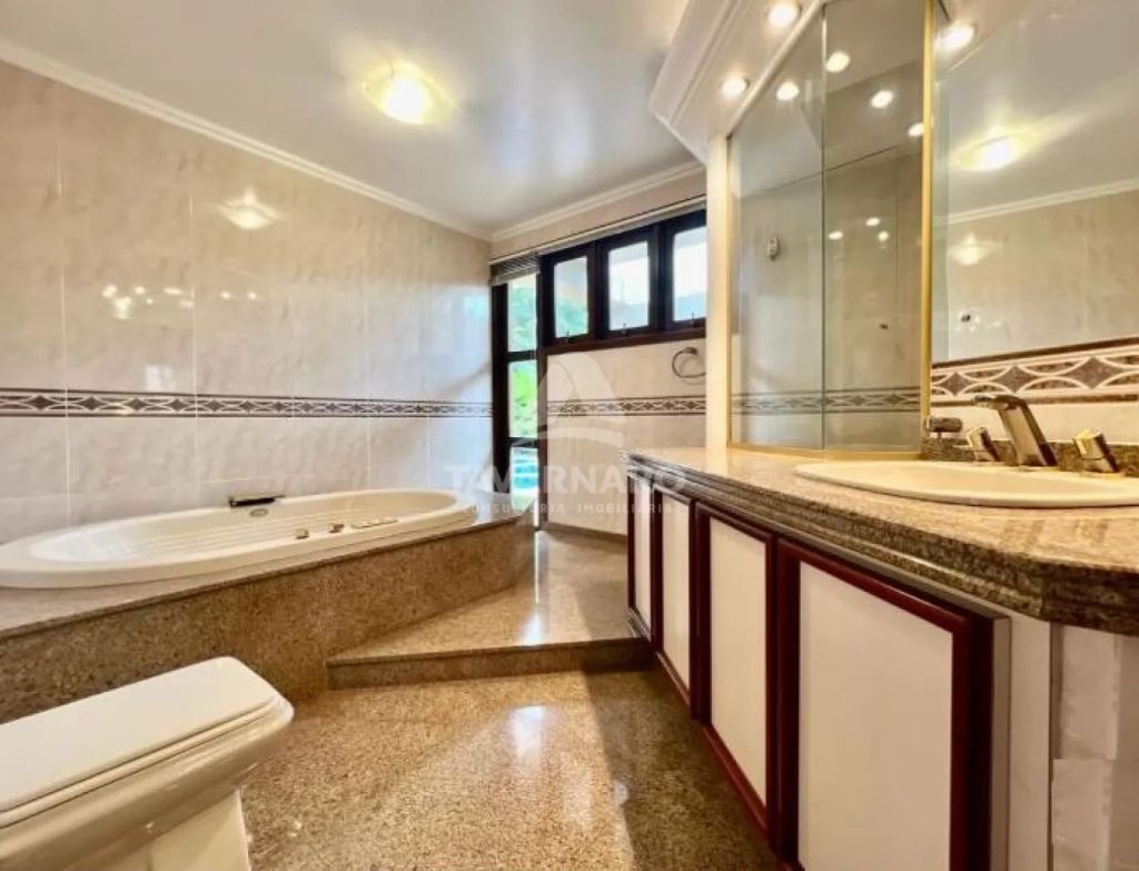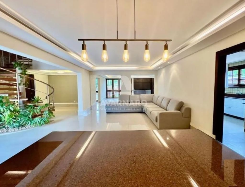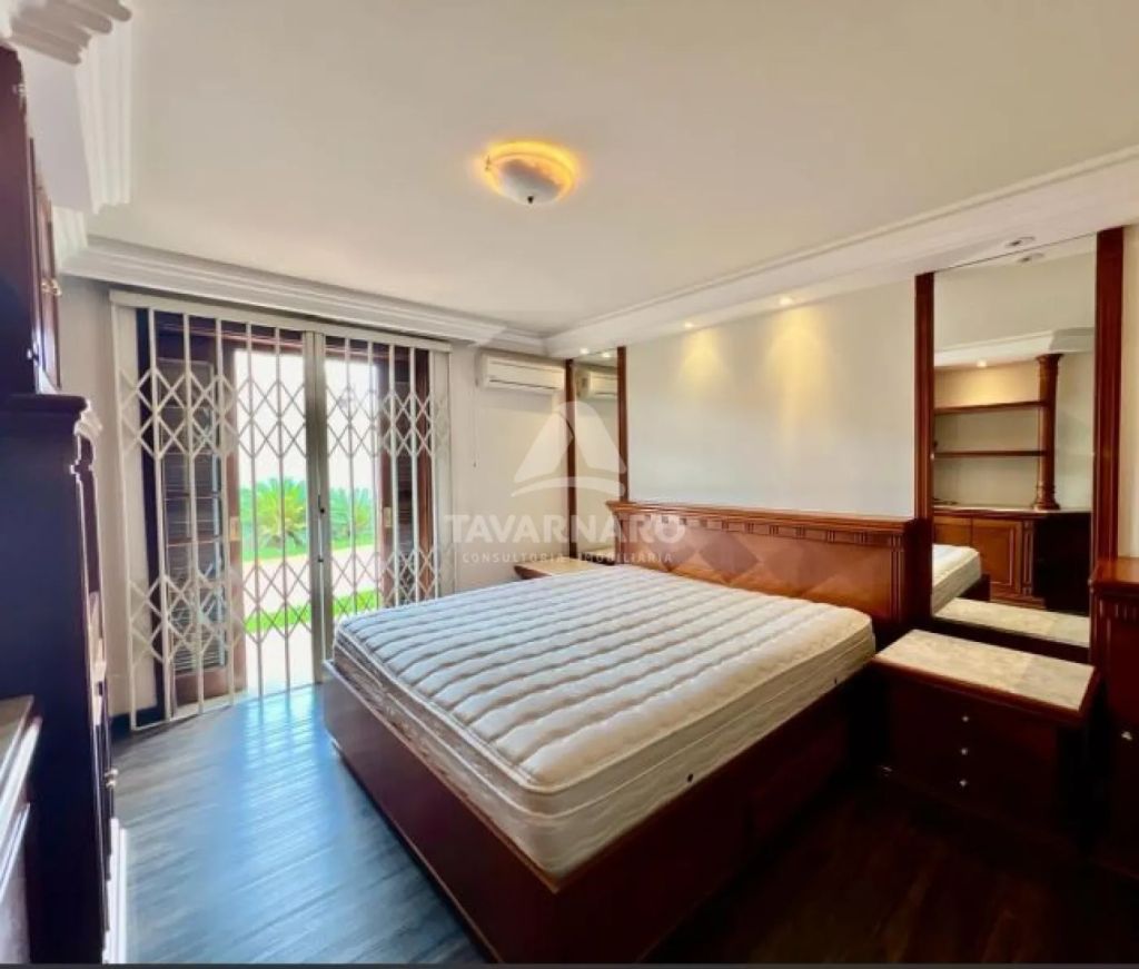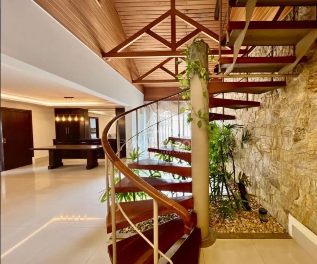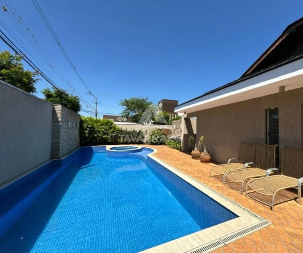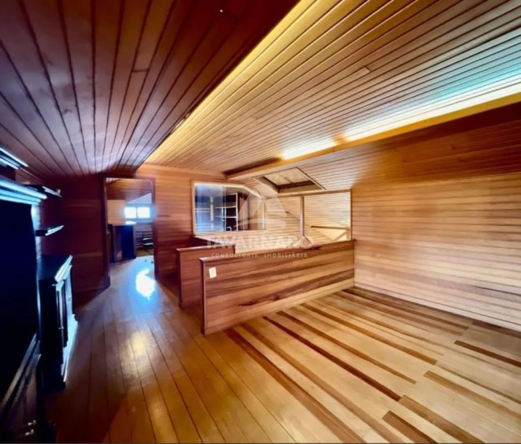 Piso térreo: sala de estar com lareira, lavabo, sala de jantar, sala de tv, 04 quartos sendo 01 suíte com closet e hidro, bwc social, cozinha, lavanderia, bwc de serviço, área de serviço, amplo espaço gourmet com churrasqueira, garagem para 08 carros e uma linda piscina aquecida e bwc que serve a piscina.