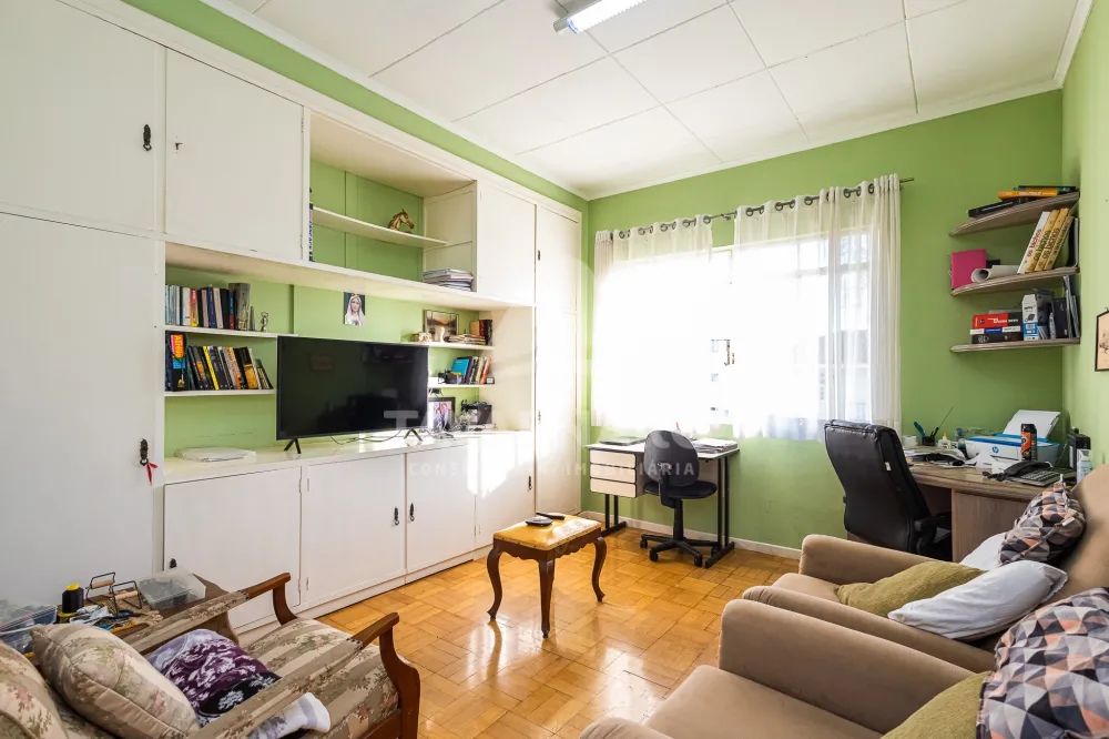A sala de estar com hall de entrada proporciona um ambiente acolhedor e profissional para receber clientes e parceiros de negócios. A presença de uma área gourmet com churrasqueira é um diferencial interessante, permitindo a realização de eventos ou confraternizações.