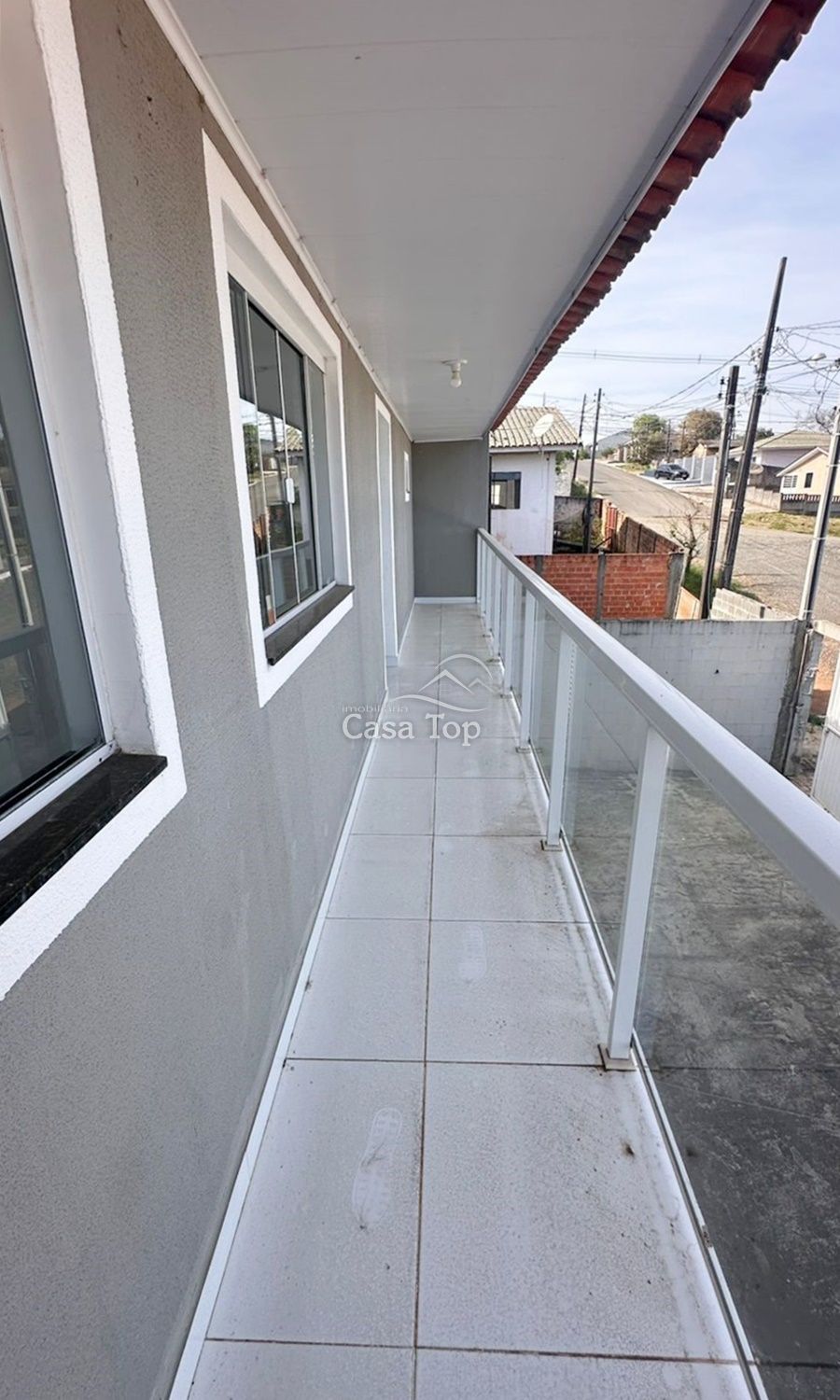 Sobrado medindo 113m², contendo 3 quartos, sala para 2 ambientes, cozinha, sacada, área de serviço, 2 BWC's sociais e 2 vagas de garagem.