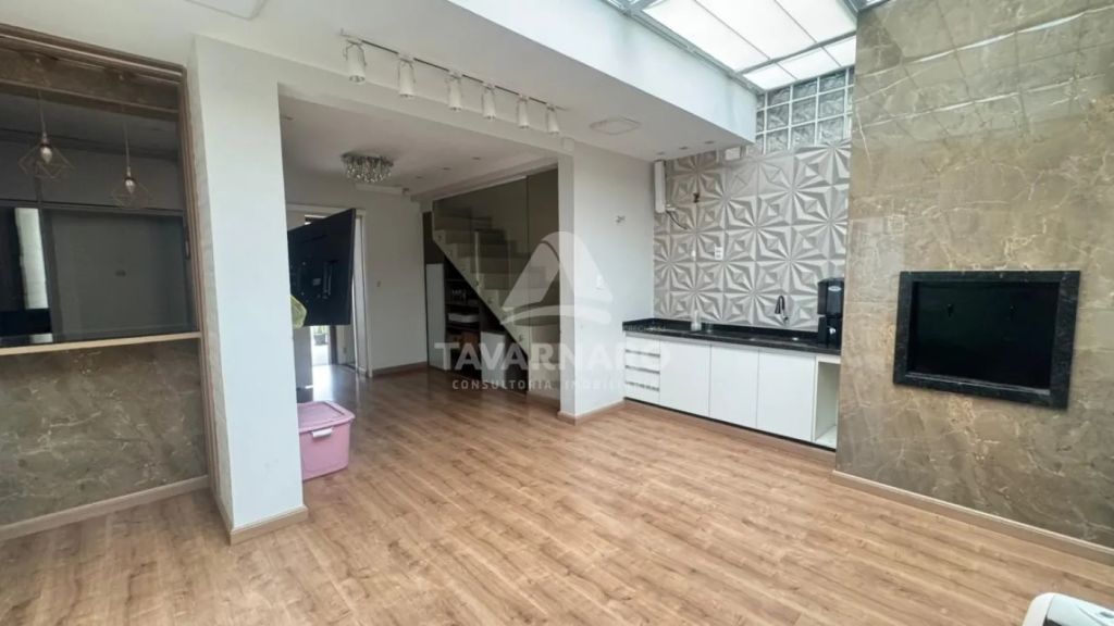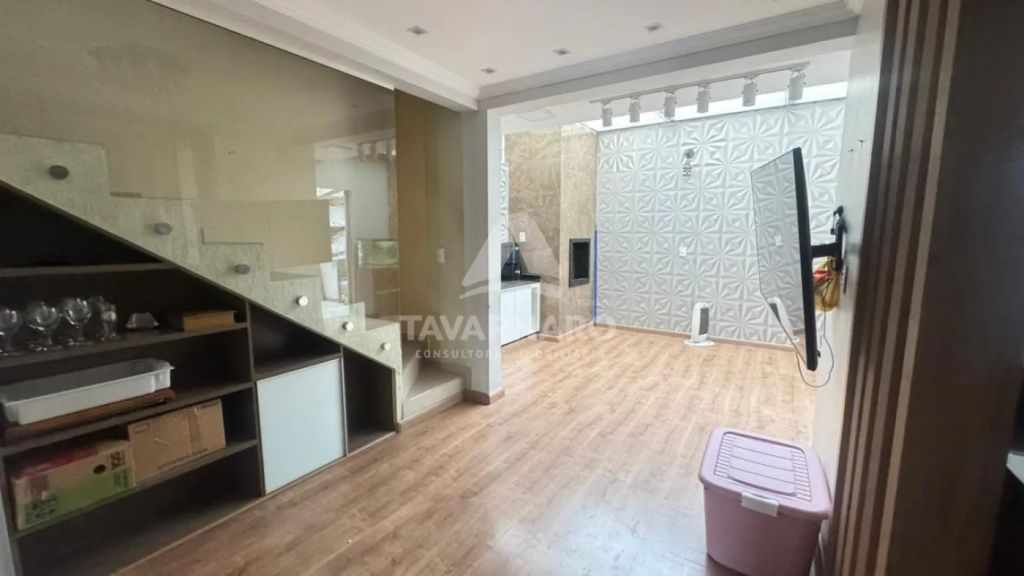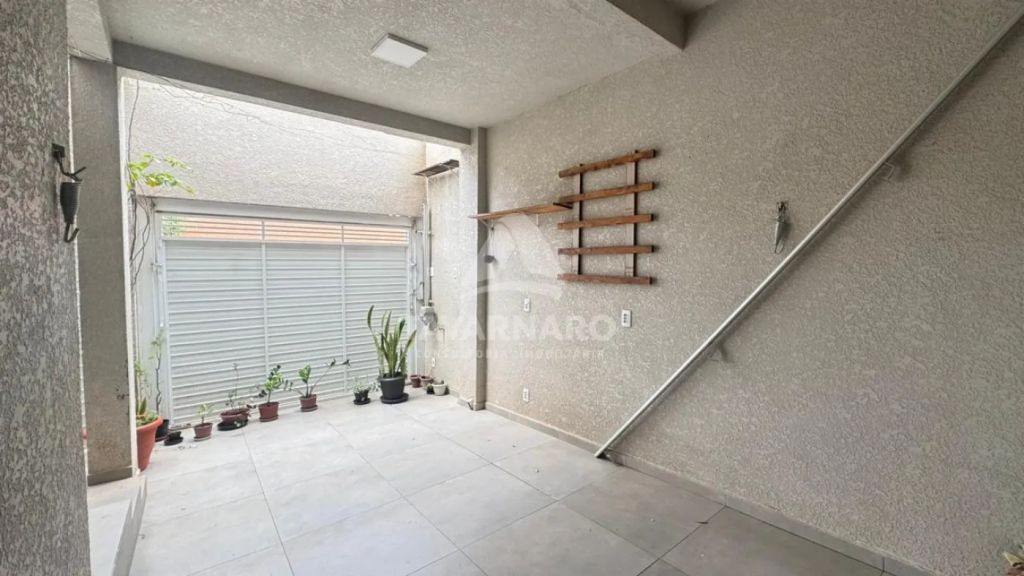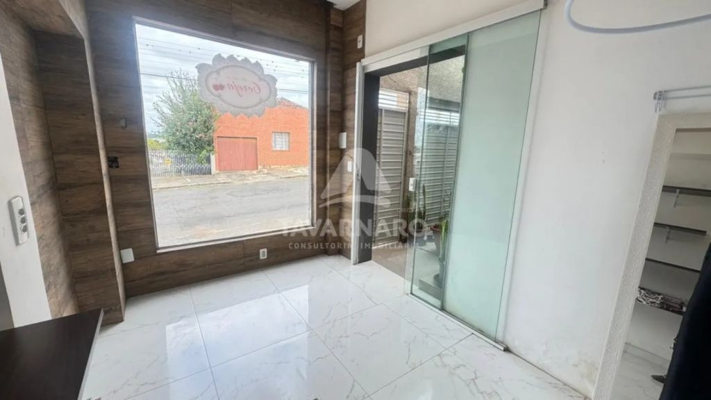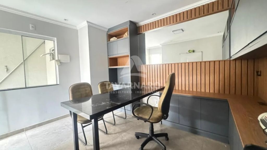 O imóvel possui três dormitórios, sendo uma suíte, sala, cozinha com armários planejados, dois banheiros, lavanderia e uma vaga de garagem coberta. Conta ainda com escritório e sala para uso comercial, ambos independentes.