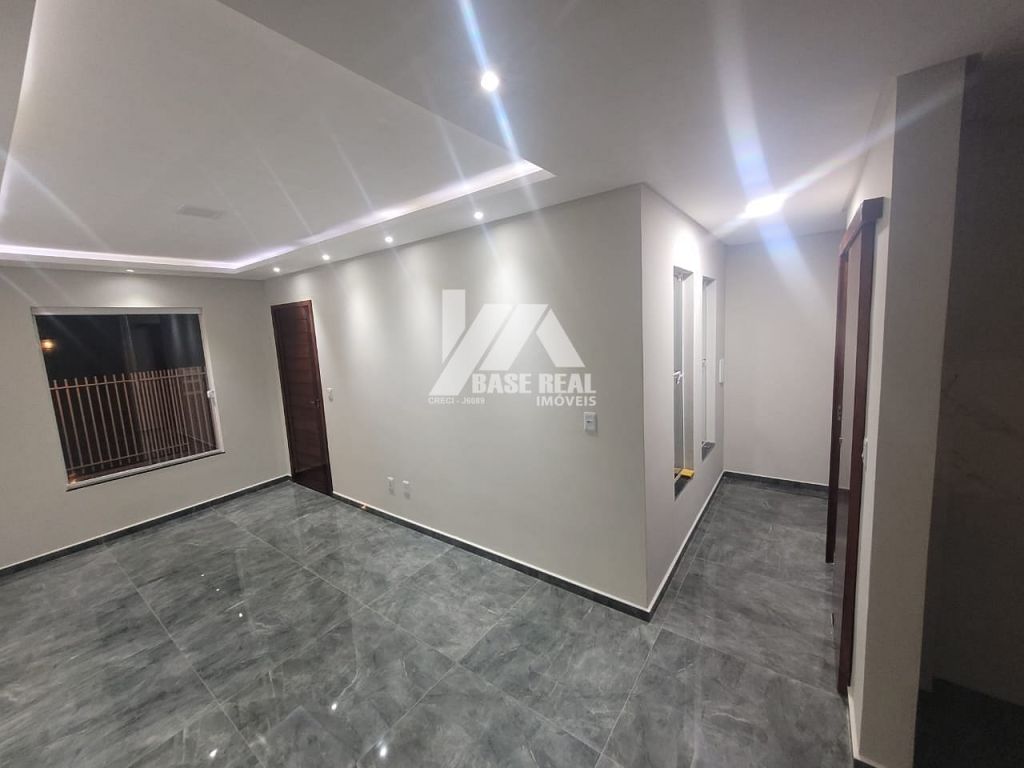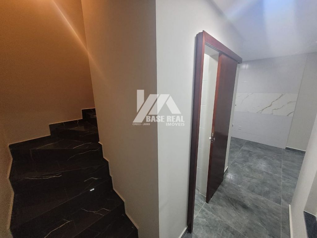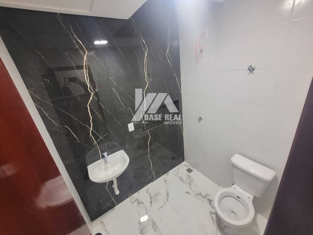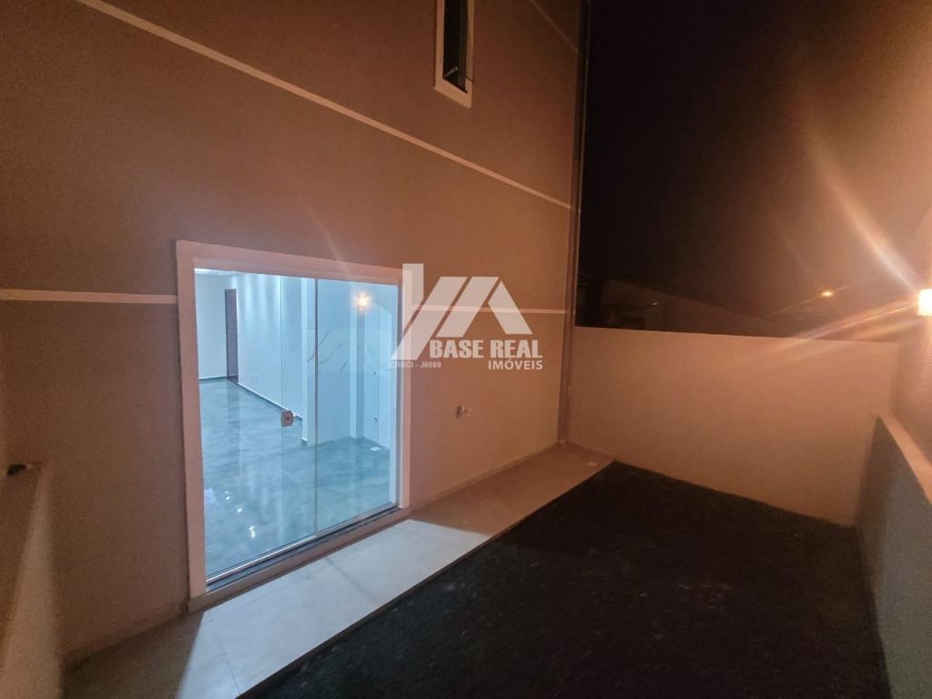 Sobrado em construção com previsão de entrega para Dezembro de 2022, medindo aproximadamente 85m², conta com: 02 quartos sendo 01 suíte, banheiro social, sala de TV, sala de jantar, cozinha, área de serviço, e lavabo. Área de terreno nos fundos.