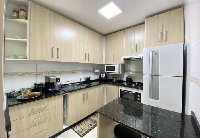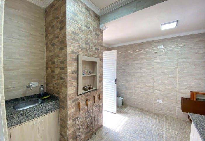 Imóvel com 3 quartos, sendo 1 suíte, ampla sala, cozinha com móveis planejados, 1 banheiro social, área de serviço e lavabo. Espaço de churrasqueira com 2 balcões e 1 vaga de garagem.