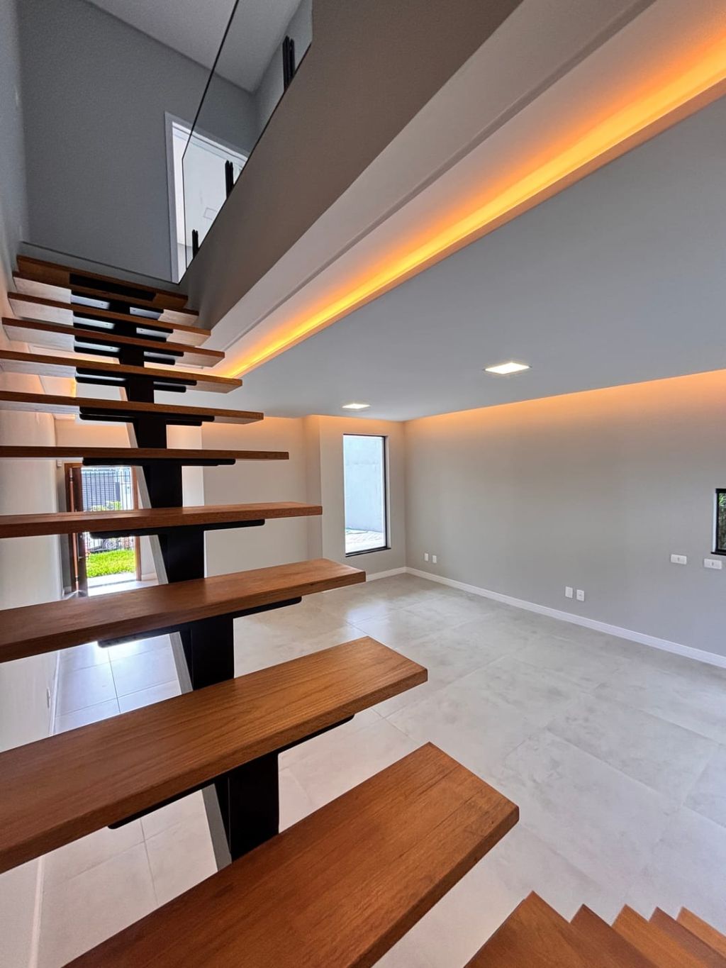 Piso inferior: Sala ampla para dois ambientes integrada com a cozinha, lavabo, lavanderia interna, passagem lateral e nos fundos, garagem para 02 carros cobertos e02 descobertas.