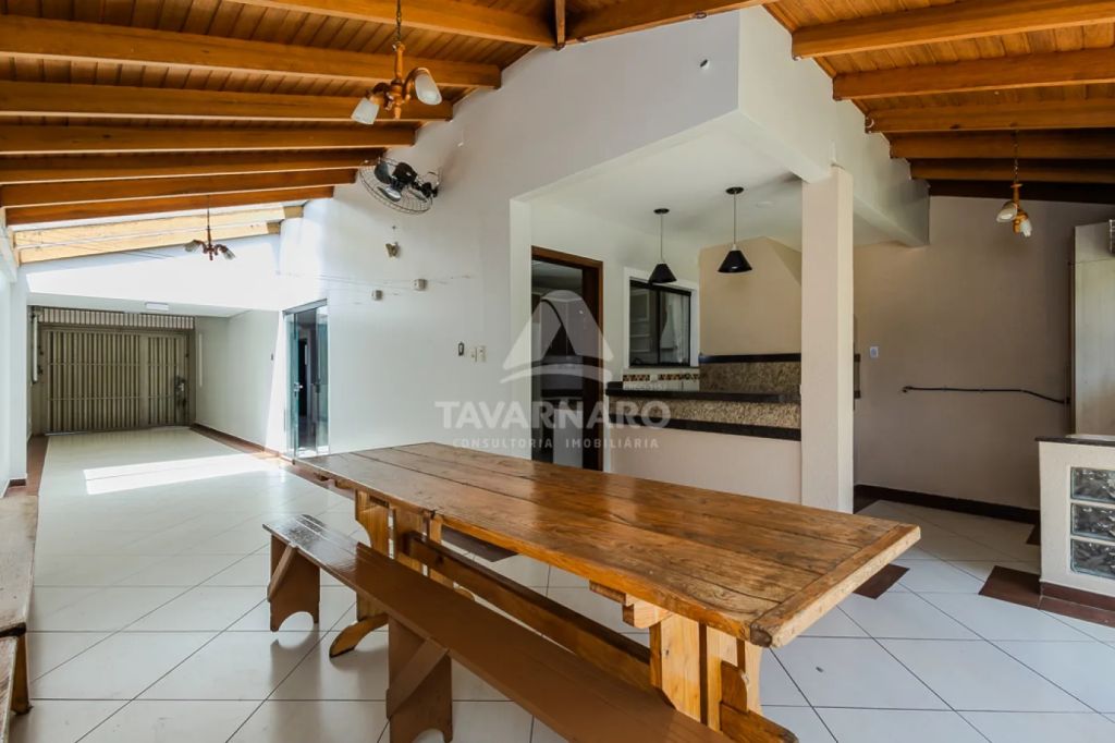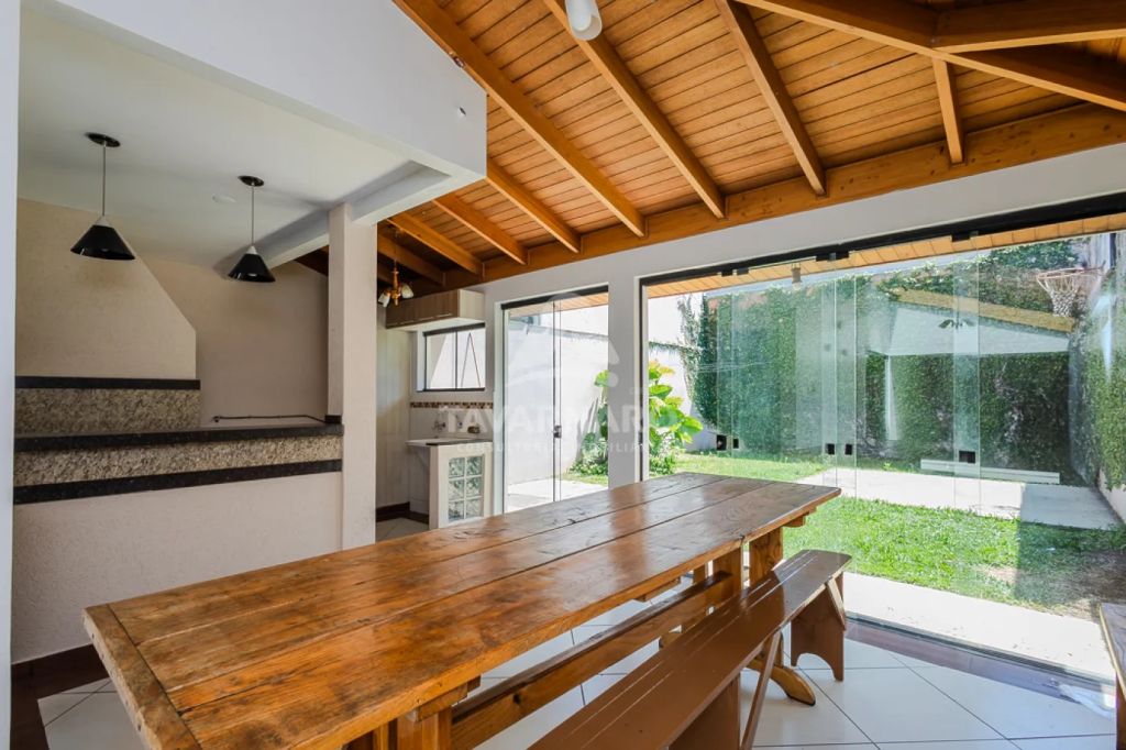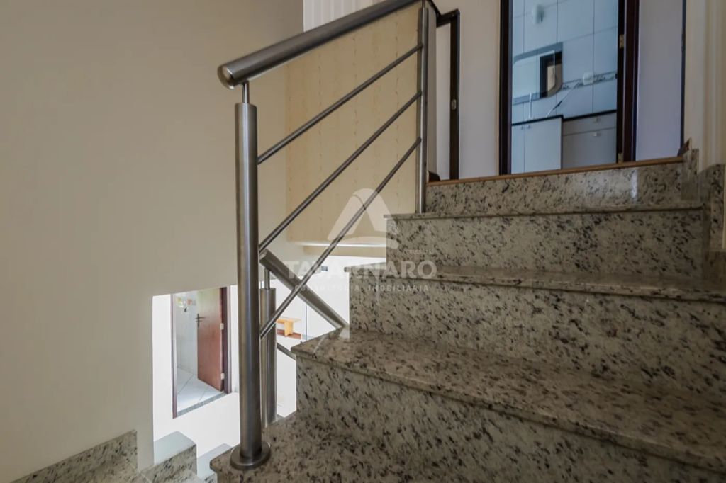 No piso superior, encontram-se três dormitórios bem planejados: uma suíte com sacada e armários, um quarto com sacada e outro com closet e armários. Há também uma sala íntima, ideal para ser utilizada como sala de TV ou espaço de descanso. A casa oferece ainda uma sala de estar, banheiro social, lavabo, sala de jantar, cozinha planejada e área de serviço. O espaço gourmet com churrasqueira é perfeito para momentos de convivência, e o amplo quintal dispõe de uma mini quadra de basquete. A propriedade conta com cinco vagas de garagem, sendo três cobertas.
