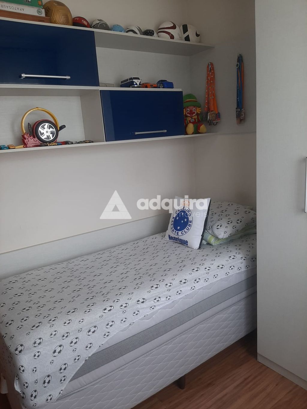 1 quarto com planejados para dormitório de solteiro e painel de TV;