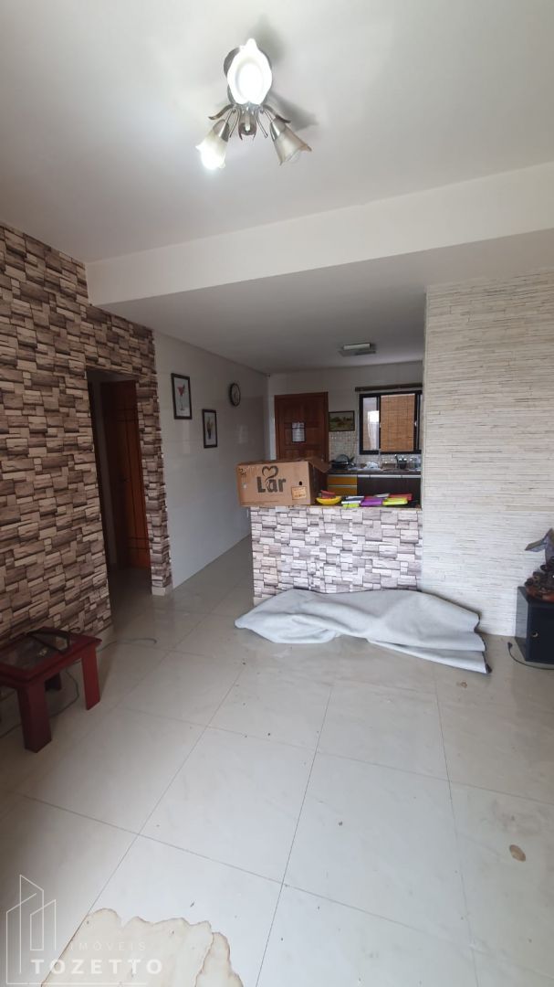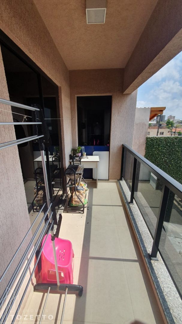 Pavimento superior: Sala, (cozinha com móveis planejados), 3 quartos (todos com sacada compartilhada) e sendo 1 dos dormitórios suíte e banheiro social.