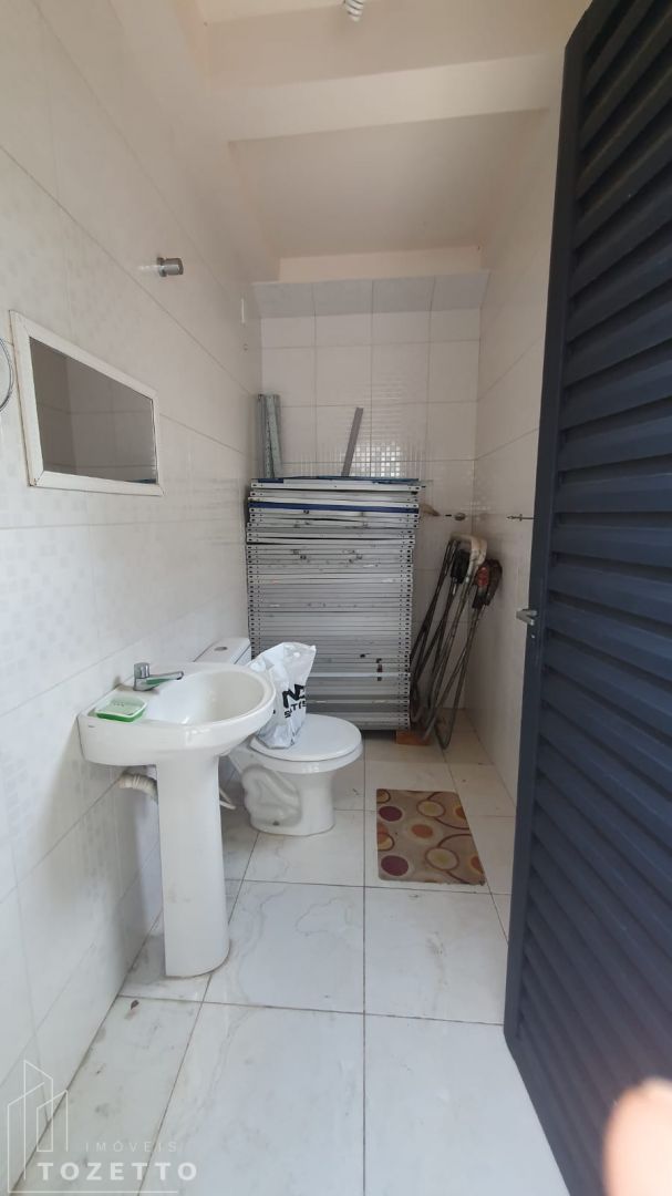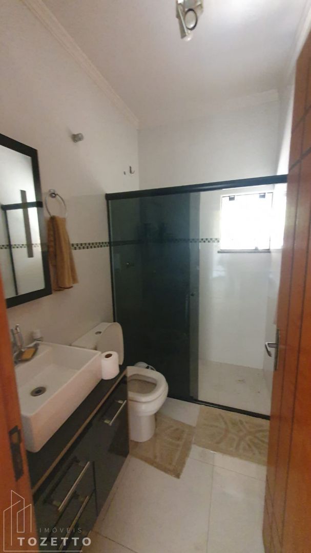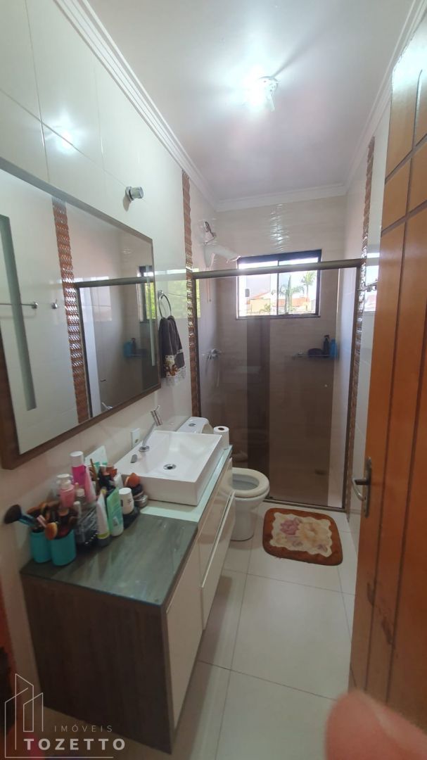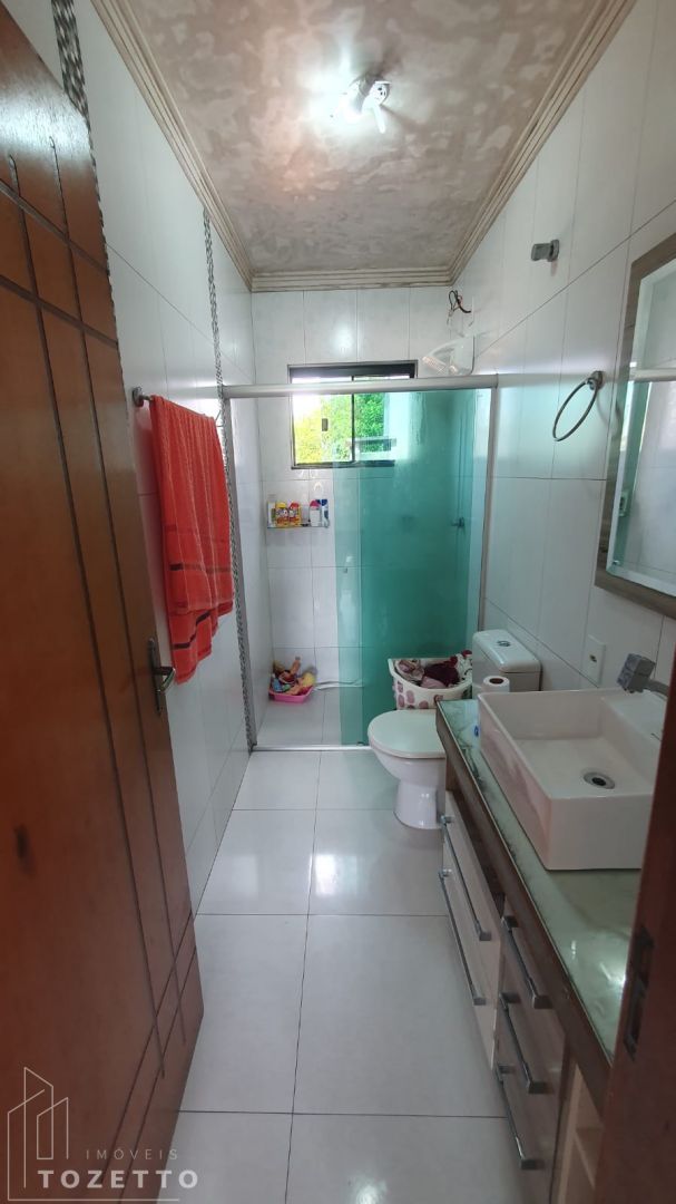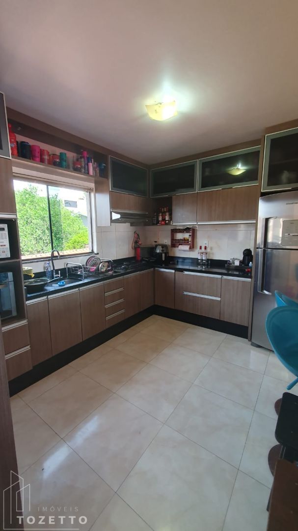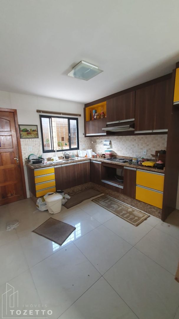 Pavimento inferior: Sala, cozinha (com móveis planejados), 2 quartos, banheiro social, lavabo, garagem coberta para 2 carros e mais 4 vagas descobertas.