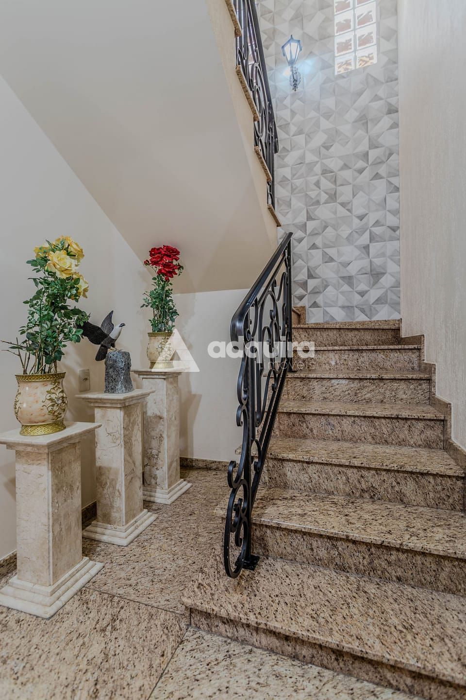 Piso térreo: Jardim, hall de entrada, copa, cozinha bem ampla com móveis planejados, bancada e pia em mármore para famílias que gostam de cozinhar e de se reunir na cozinha, lavabo, sala ampla com acesso para o jardim e acesso para a o espaço gourmet com bancada, pia, churrasqueira, forno a lenha, fogão a lenha e espaço para uma longa mesa com bancos laterais, 2 lavabos, depósito, canil e vaga para 3 carros.