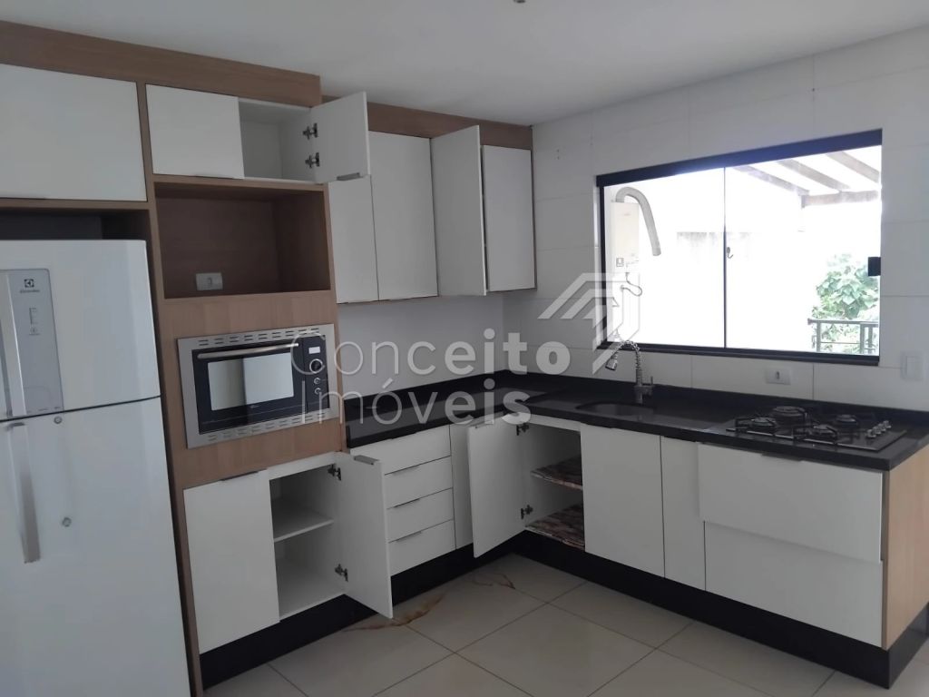 Lindo e funcional sobrado, semi mobiliado, contando com: 03 vagas para veículos, sendo destas uma coberta e duas descobertas. Sala para 02 ambientes com sofá, cozinha com móveis planejados, cooktop, forno e geladeira, tendo tudo o que você precisa no quesito móveis e eletros. Ainda na parte térrea possui 01 lavabo e espaço gourmet com churrasqueira coberta, área de serviço com lavadora de roupas e espaço de terreno ao fundo. Na parte superior o imóvel conta com 03 quartos, sendo destes uma suíte e banheiro social e banheiro social com box e chuveiro.