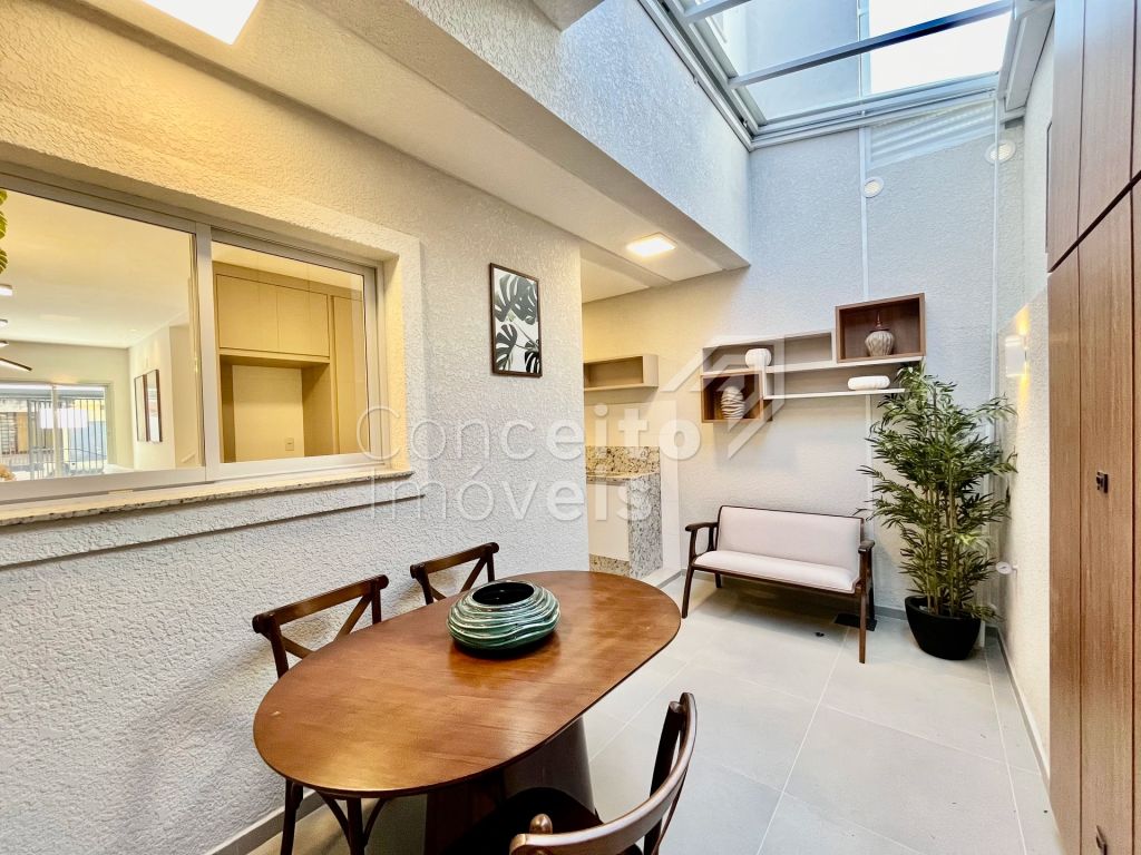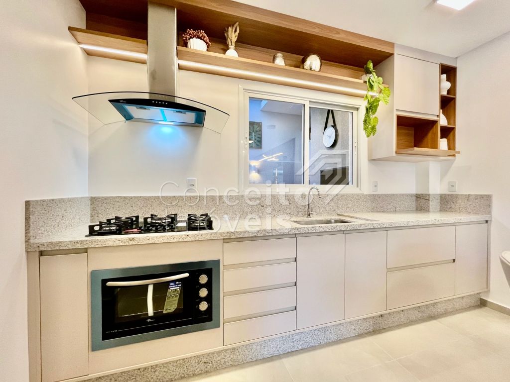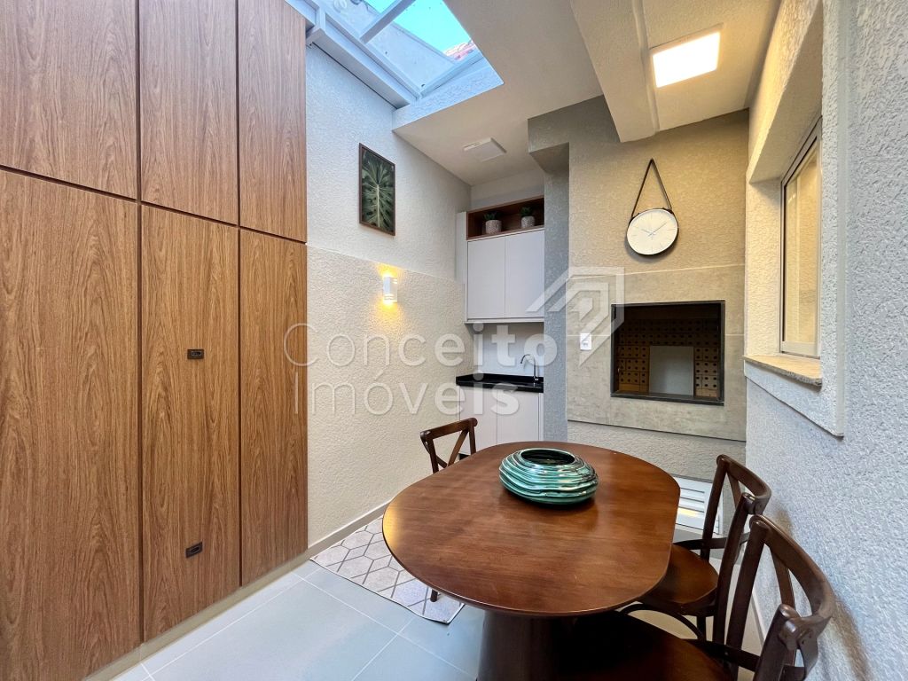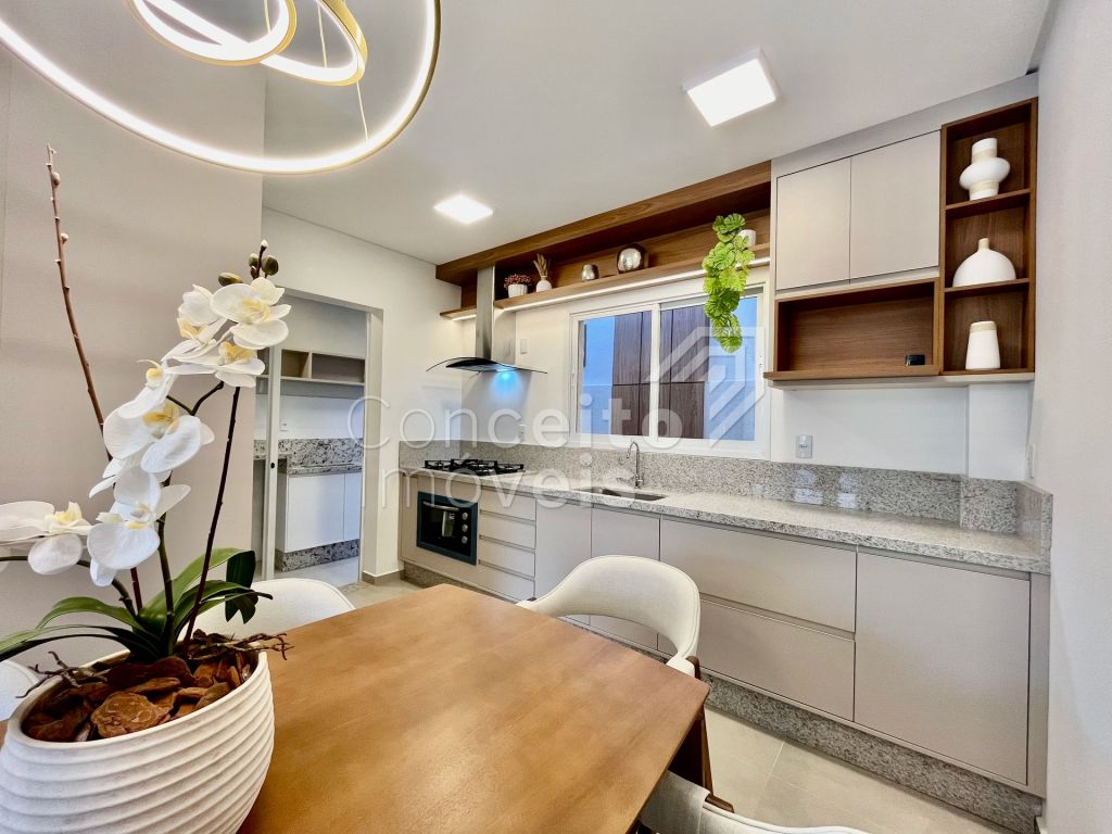 Na parte superior conta com três quartos, sendo destes uma suíte com móveis planejados e sacada, banheiro social com armário planejado, espelho e box, tudo decorado pensando em você. O imóvel também conta com preparação para ar condicionado, aquecimento à gás, iluminação personalizada e led em todos os ambientes. Venha se surpreender em cada detalhe, agende hoje mesmo uma visita com um de nossos corretores e apaixone-se!