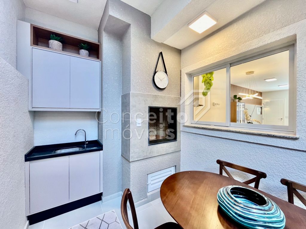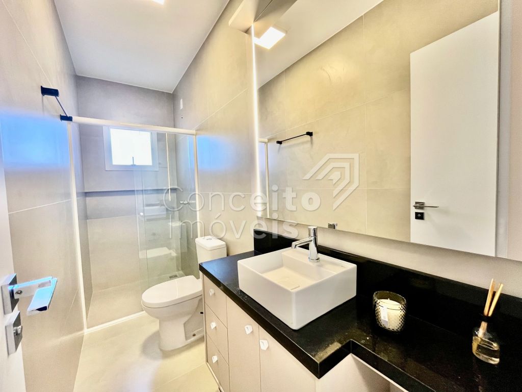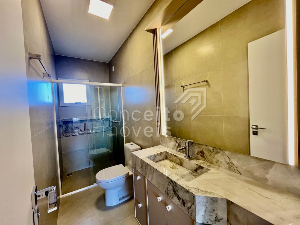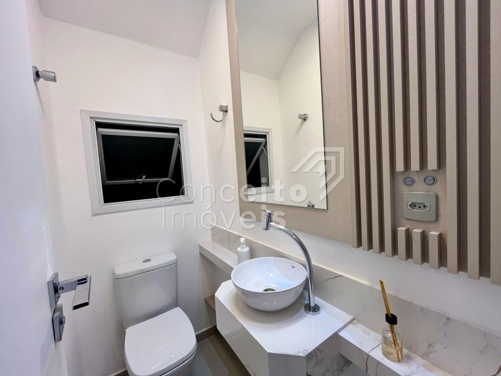 Na parte superior conta com três quartos, sendo destes uma suíte com móveis planejados e sacada, banheiro social com armário planejado, espelho e box, tudo decorado pensando em você. O imóvel também conta com preparação para ar condicionado, aquecimento à gás, iluminação personalizada e led em todos os ambientes. Venha se surpreender em cada detalhe, agende hoje mesmo uma visita com um de nossos corretores e apaixone-se!