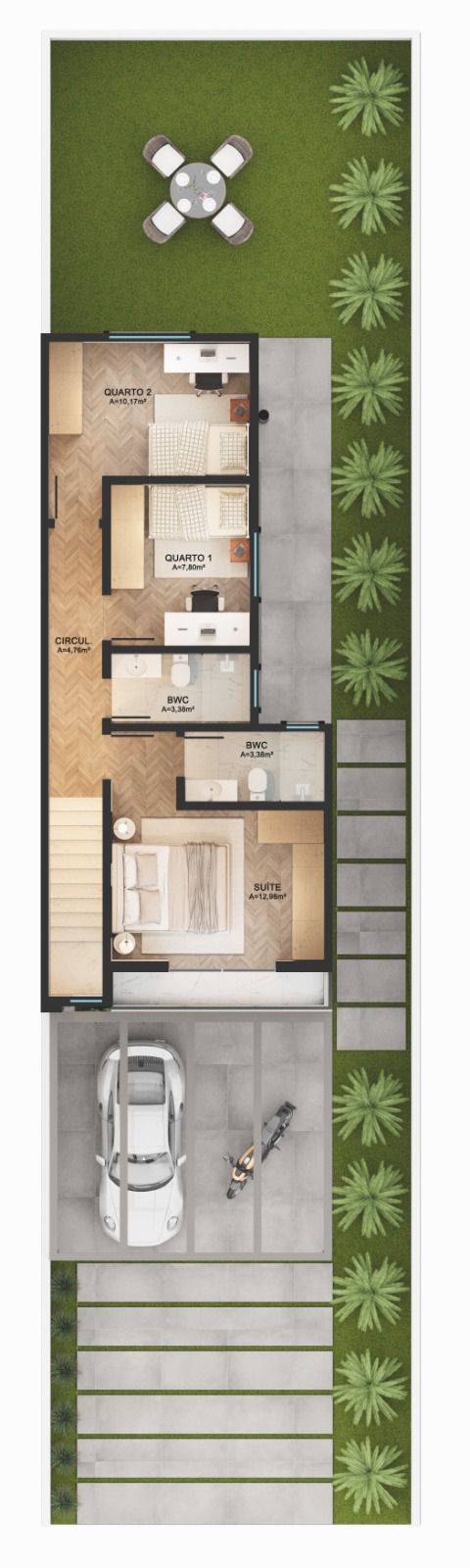 - Revestimento em porcelanato (pavimento inferior)