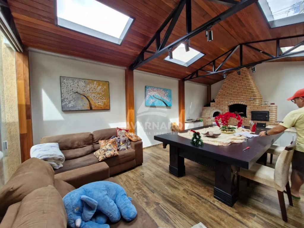 Possui 300 m² com 2 dormitórios, sendo uma suíte master com closet e sacada, ático, sala, cozinha planejada, lavabo, banheiro social, área de serviço, área gourmet, jardim de inverno e garagem para 3 veículos.